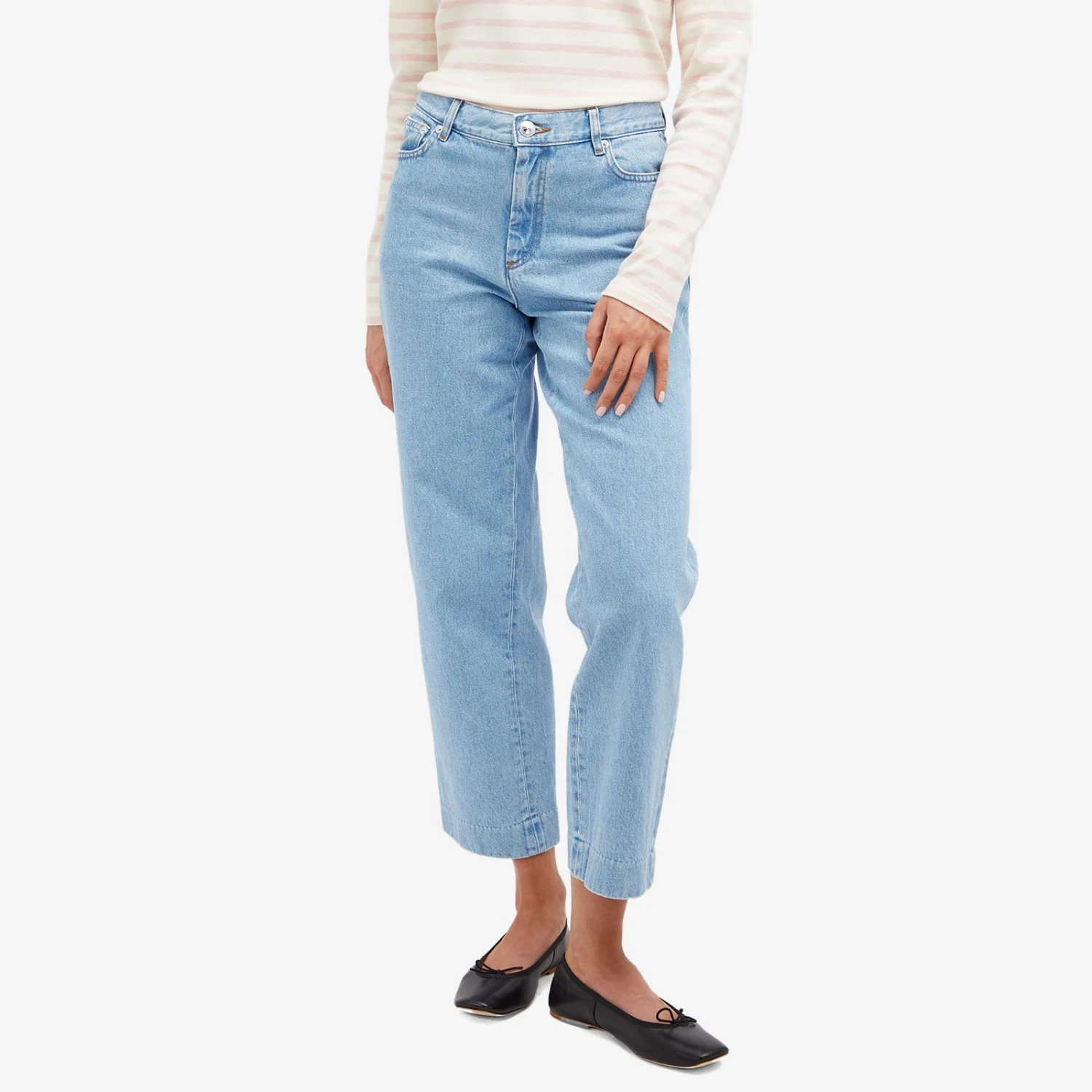 Elevate your wardrobe with the A.P.C. New Sailor Straight Leg Jeans. Exuding a minimalist chic with a high-rise, hip-hugging fit, these jeans offer a contemporary loose silhouette and seven-eighths length for an effortlessly stylish statement. Crafted with classic, they’re the quintessence of A.P.C.’s commitment to understated elegance and enduring quality. Perfect.