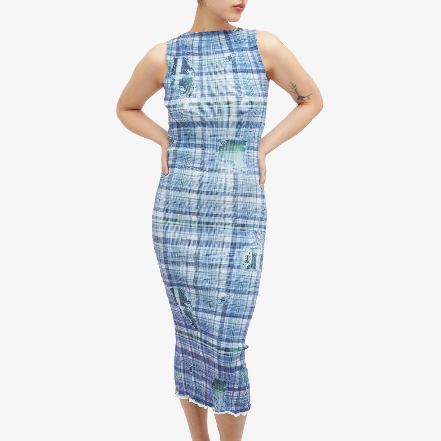 Uncover the innovative spirit of Acne Studios with this Printed Check Midi Dress. Exemplifying the label’s eye for artistry, this sleeveless knit design flaunts a fitted silhouette, eye-catching print and refined roll hem detailing – guaranteed to make a statement through the seasons.