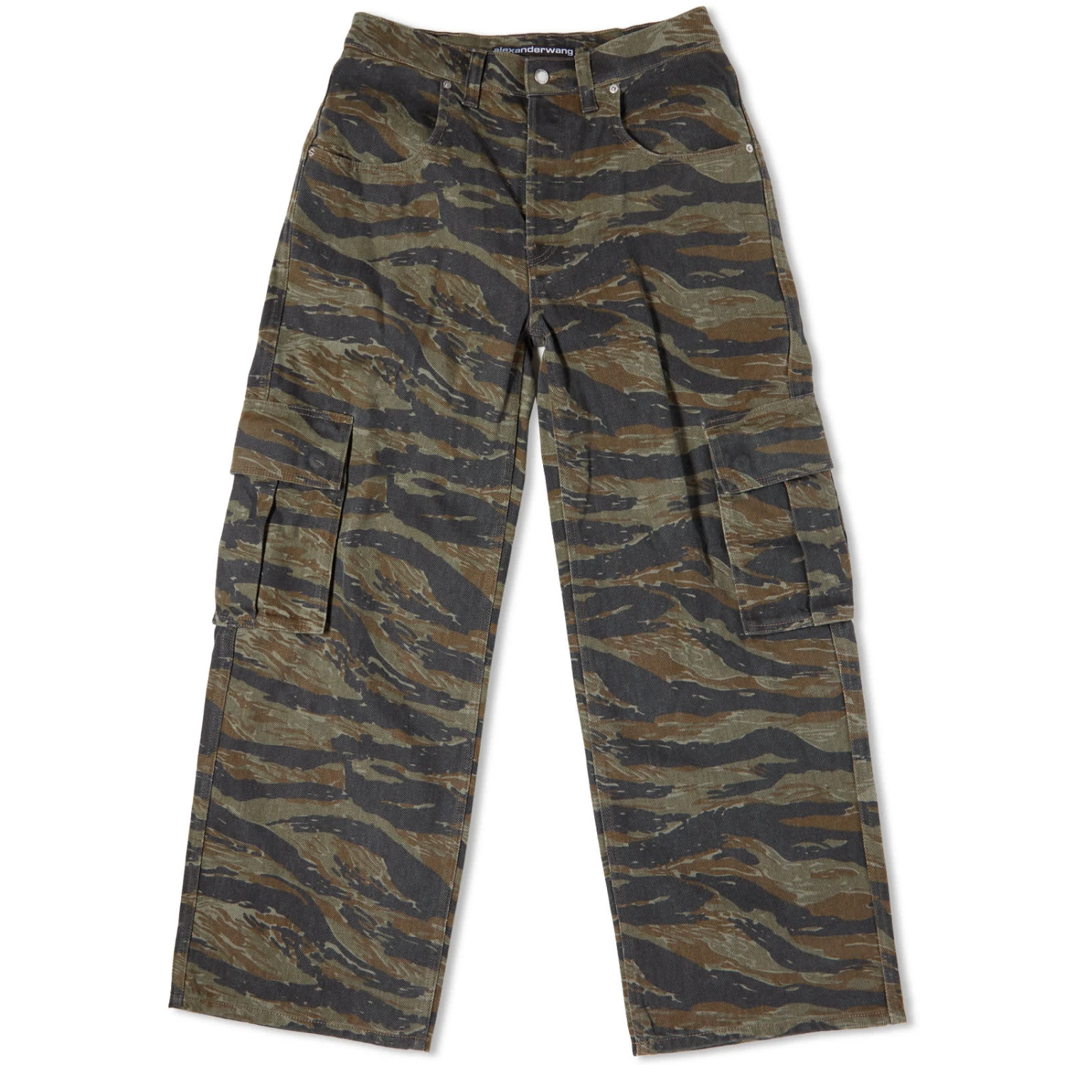 Alexander Wang’s grunge-cool aesthetic has been a mainstay since 2015 – and these Camo bagged out combat pocket jeans further exemplify those iconic design codes this FW23 season. Decorated with a classic camo print across the body, the exaggerated silhouette is then depthened with cargo pockets – while subtly printed branding wraps around the waist.