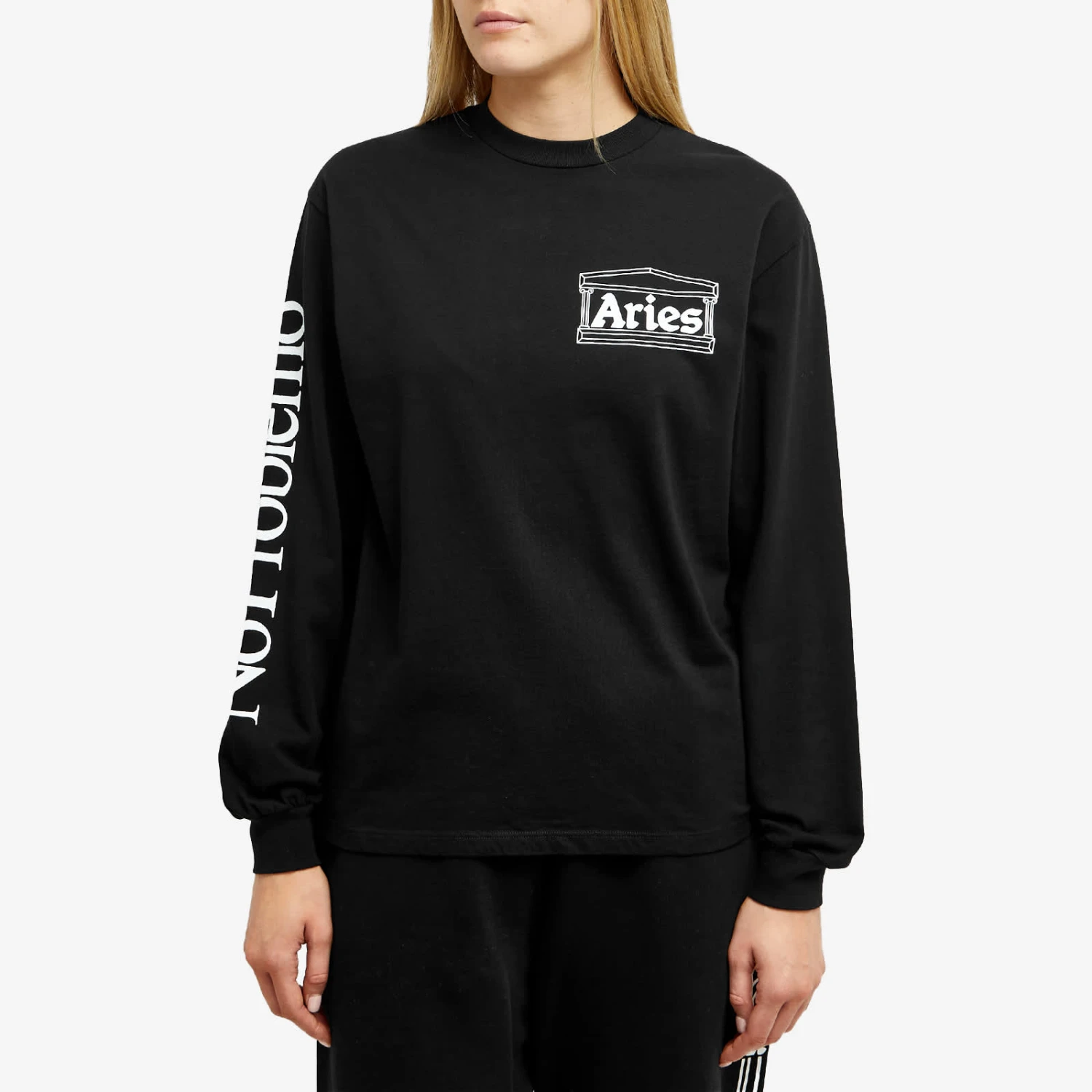 Aries’ penchant for graphic-driven designs continues with this Long sleeve rat t-shirt. Decorated with some of the British brand’s most unmistakable motifs across the body (note the playful Rat mascot and tongue-in-cheek Temple logo) – while the No Problemo slogan decorates the sleeve.