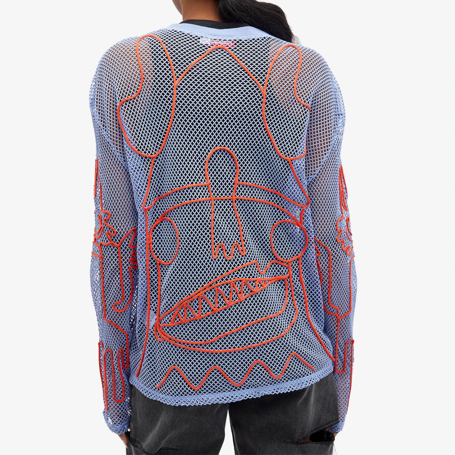 Part of Charles Jeffrey LOVERBOY’s Pre-Spring Collection, the Graphic Net Top is a celebration of expression and freedom. The most prominent feature is the embroidered mythical beast, inspired by the designer’s fascination with mediaeval Britain and sartorial history. Pop a vest underneath or brave it solo, the choice is yours.