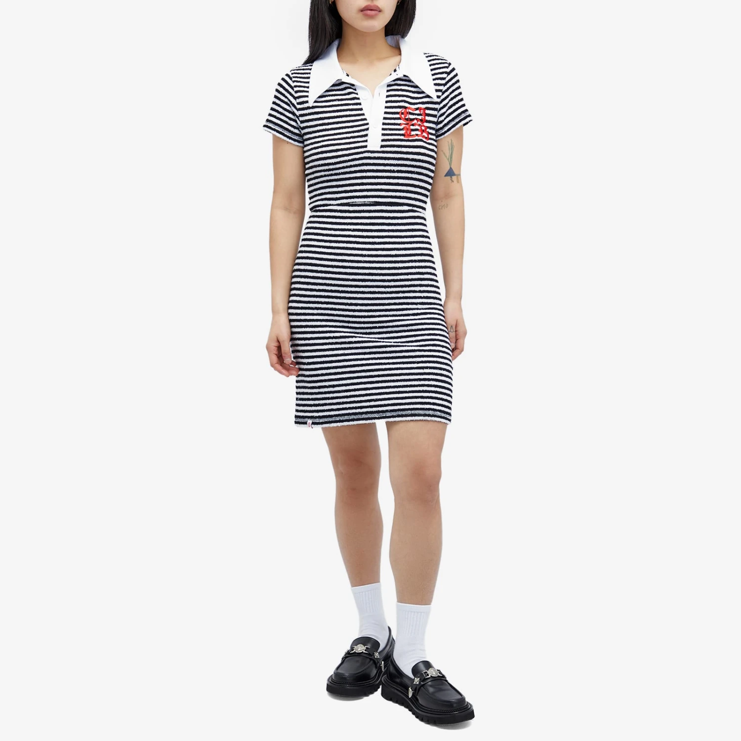 Named after everyone’s favourite little scorpion, the Wednesday Dress by Charles Jeffrey is a mini dress with a twist. Featuring an exaggerated collar, this dress is crafted from soft terry cloth providing maximum comfort. The embroidered logo adds a pop of colour to this chic monochromatic must-have.