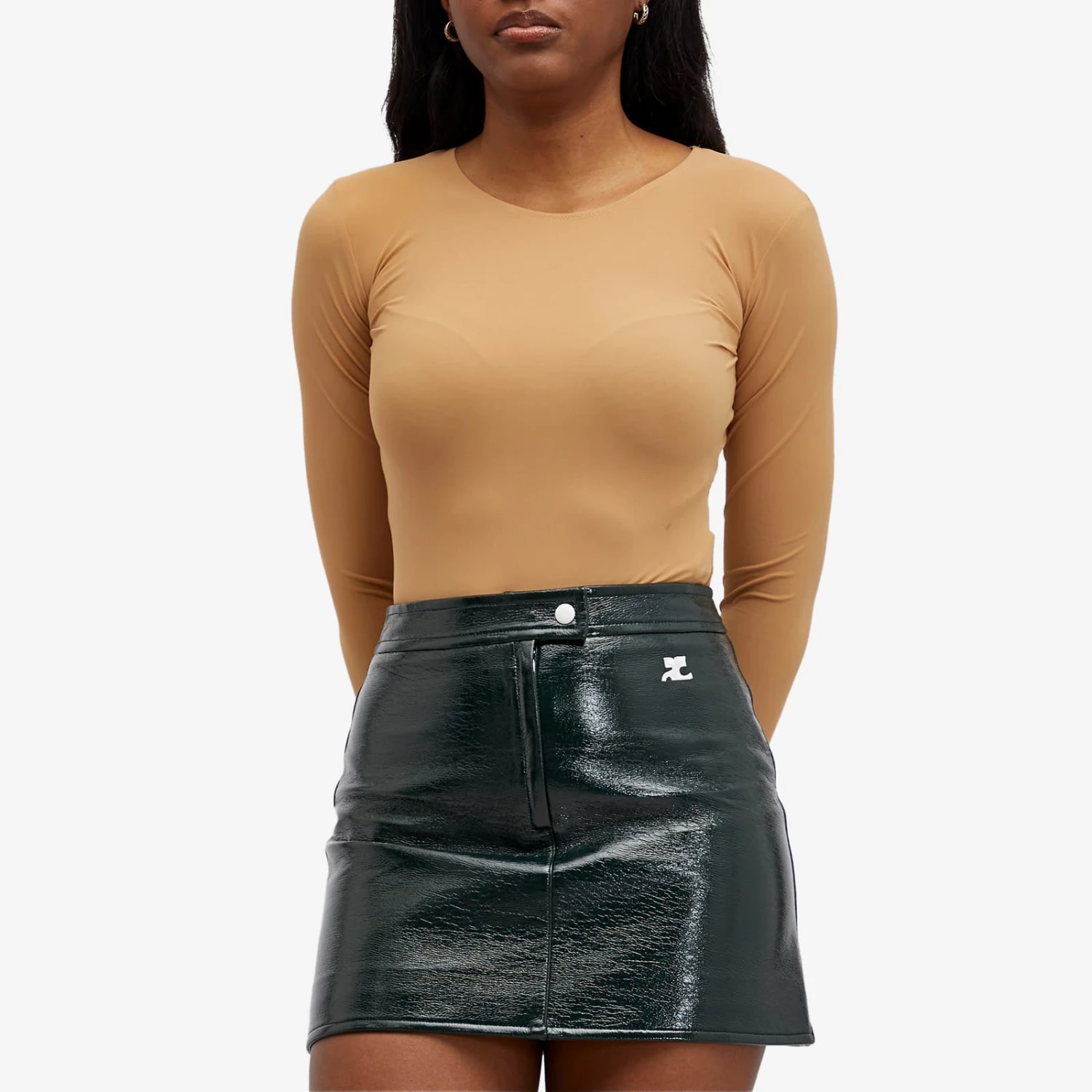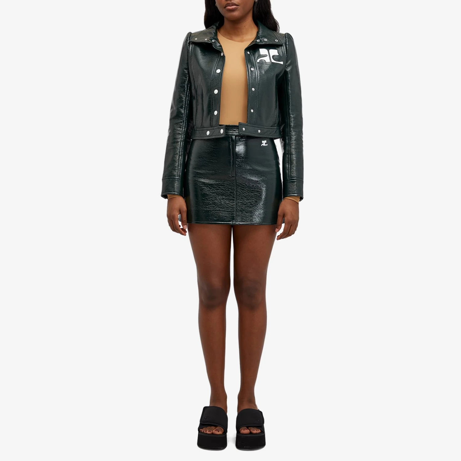 Courrèges is dialing it back to its emblematic 1971 style with this vinyl mini skirt from the Reedition lineup. It nails the vintage vibe with a form-fitting design and a minimalist a-line shape. Its glossy fabric is highlighted by white embroidered logos and finished with a lacquered snap button.