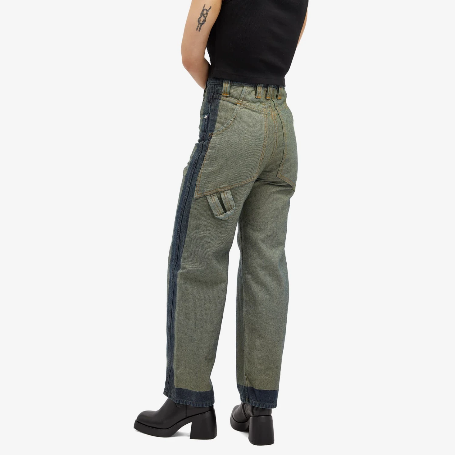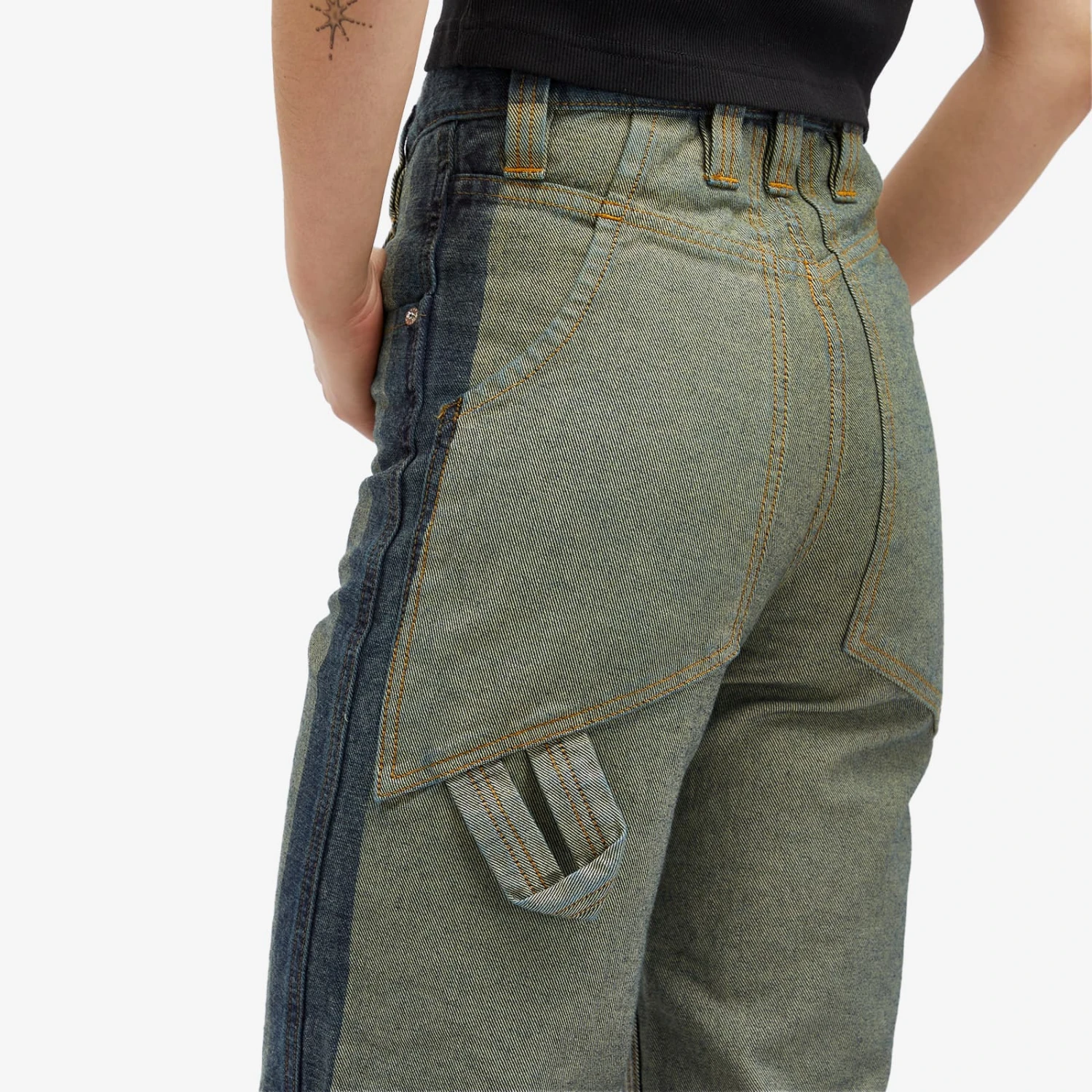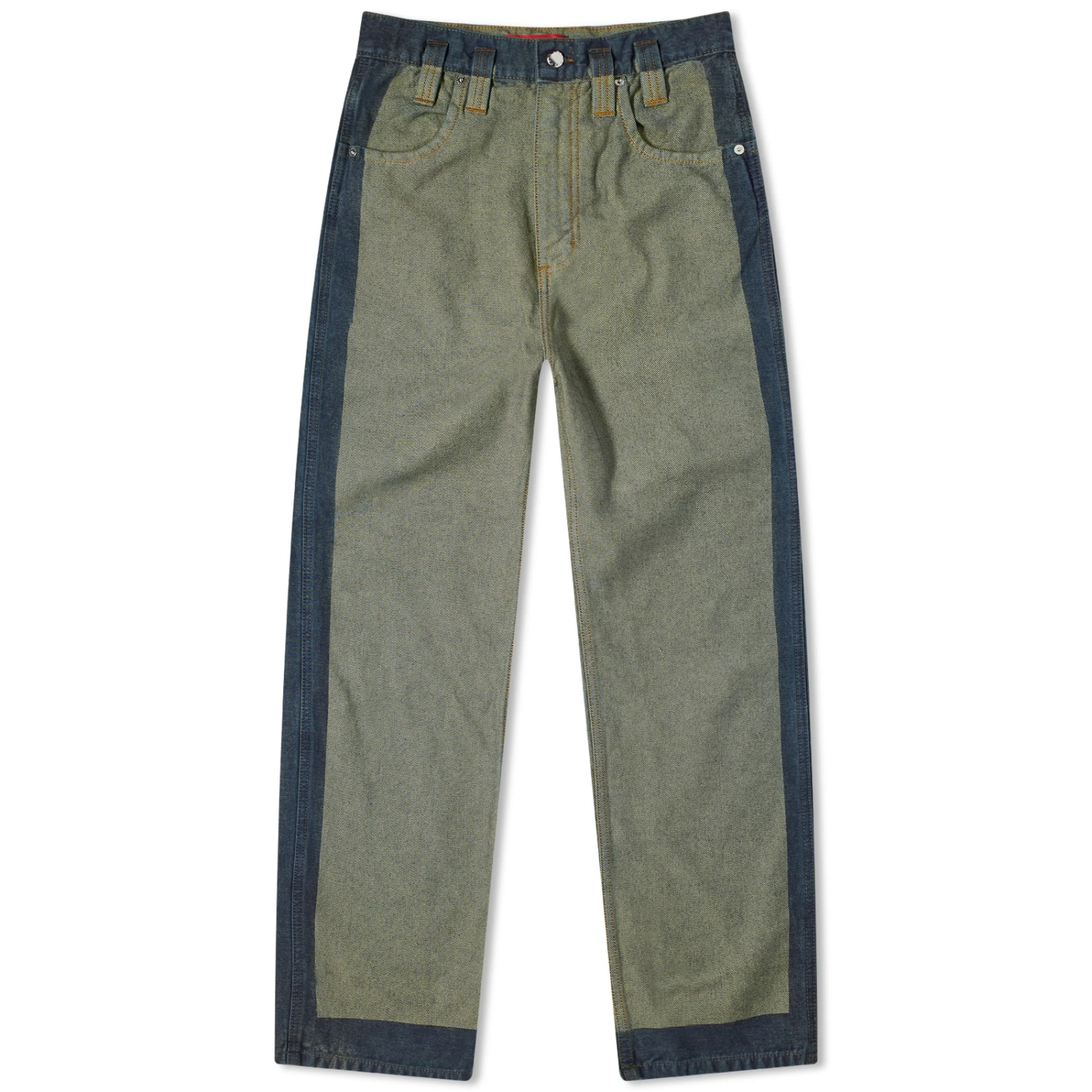 If you’re looking for a brand that doesn’t play by the rules, Eckhaus Latta is your go-to, known for its surprising use of materials and love for exploring textures. This season, it’s given the fan-favourite baggy jean a cool makeover. A stencilled spray wash on the edges results in an eye-catching two-tone effect on a green base.