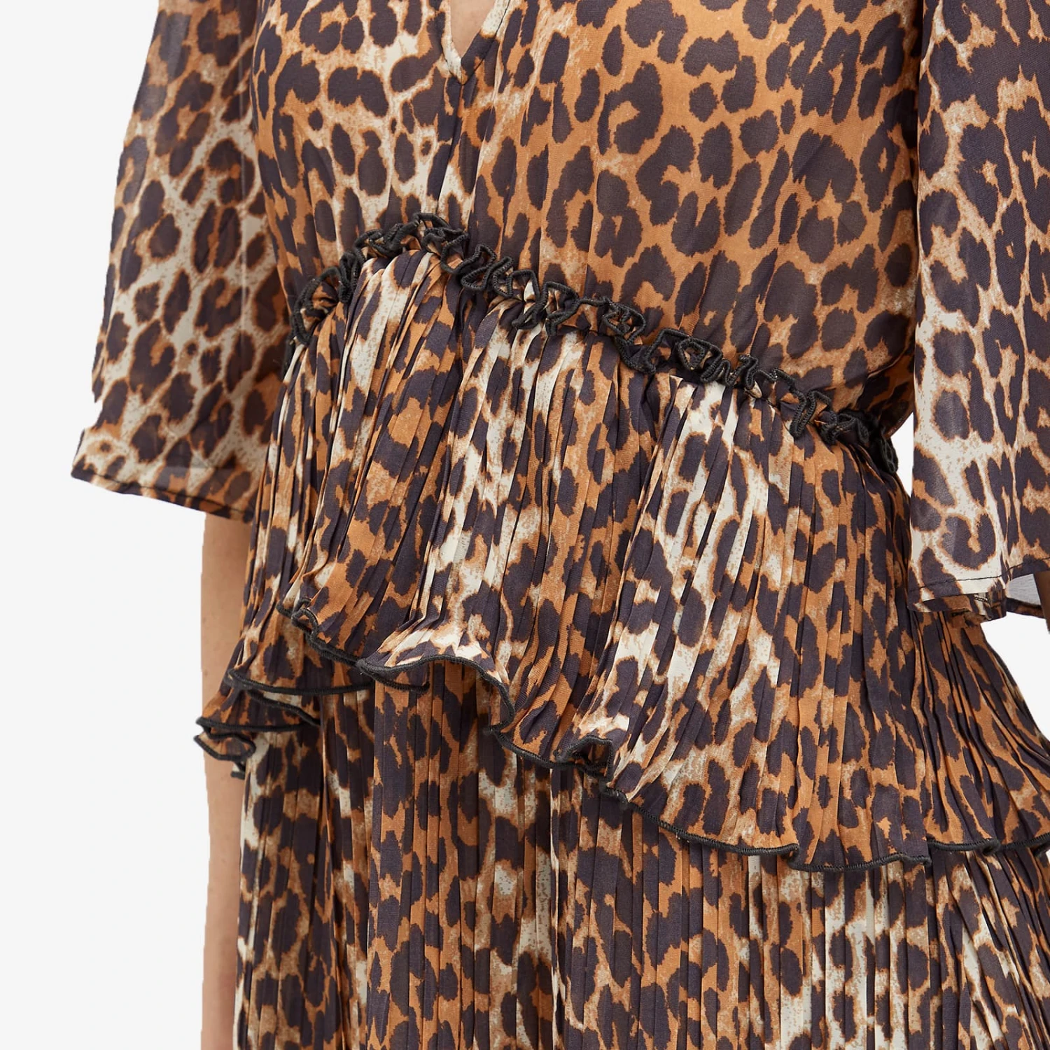 If you’re a GanniGirl then you’ll know that leopard print is GANNI’s thing. So naturally the Scandi brand needs to apply its favourite print to every collection each season. We’re going wild over the Georgette V Neck Mini Dress thanks to its v-neckline, loose sheer elbow-length sleeves and floaty flounce frill detailing.