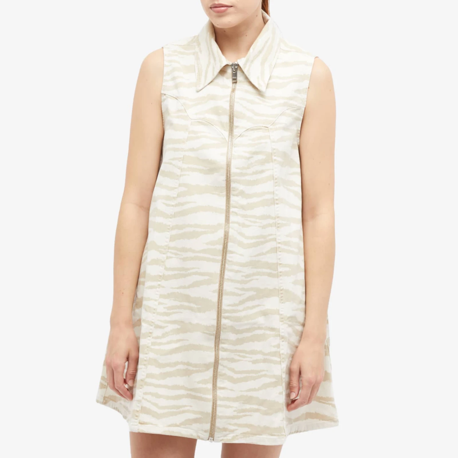 GANNI showcases its Scandi stripes with this denim dress. This summer take on the staple mini dress is crafted from organic cotton for a sustainable spin – while the contrasting sleeves make for an eye-catching silhouette. Accompanied by silver hardware running down the body, this timeless design promises to make a statement, wherever the day takes you.