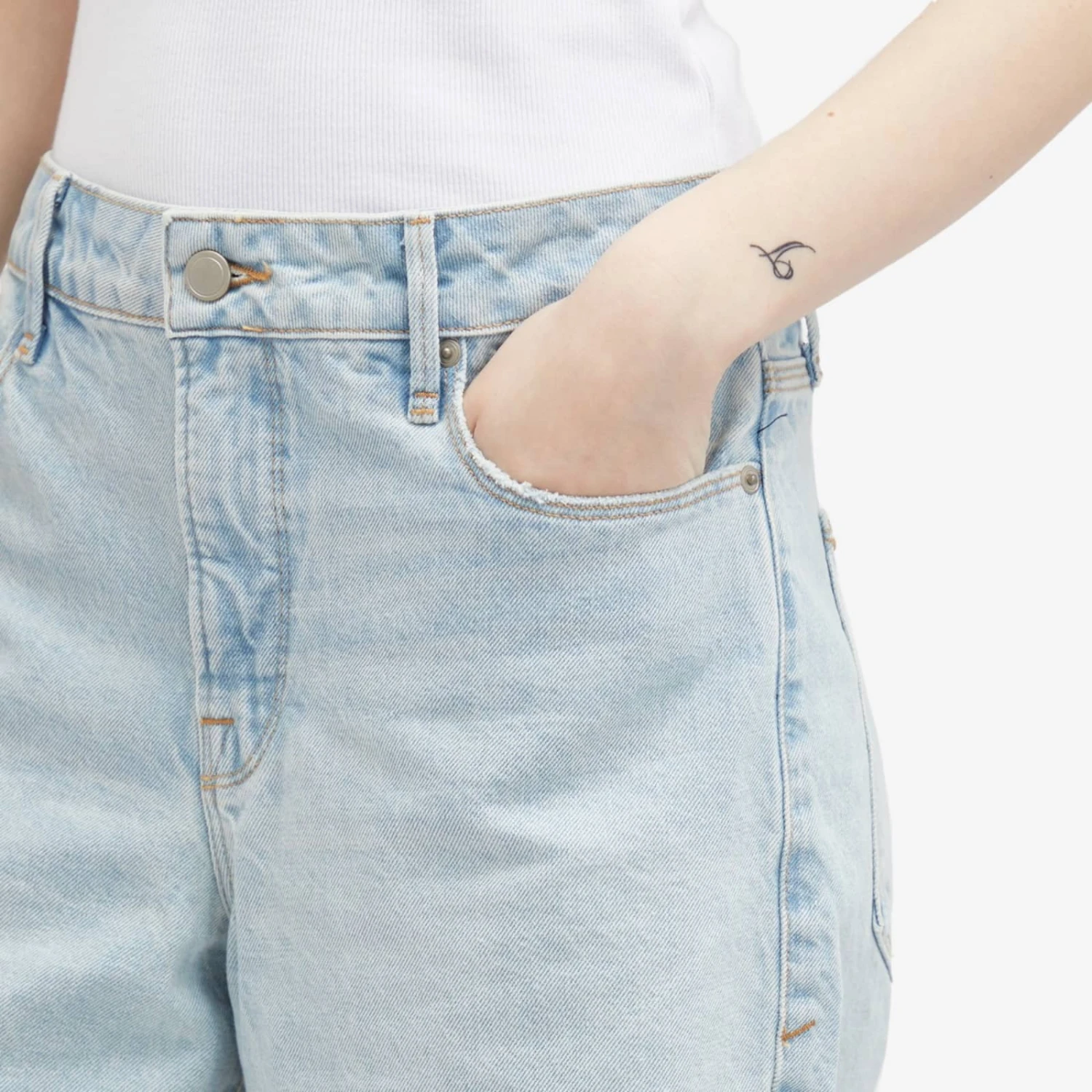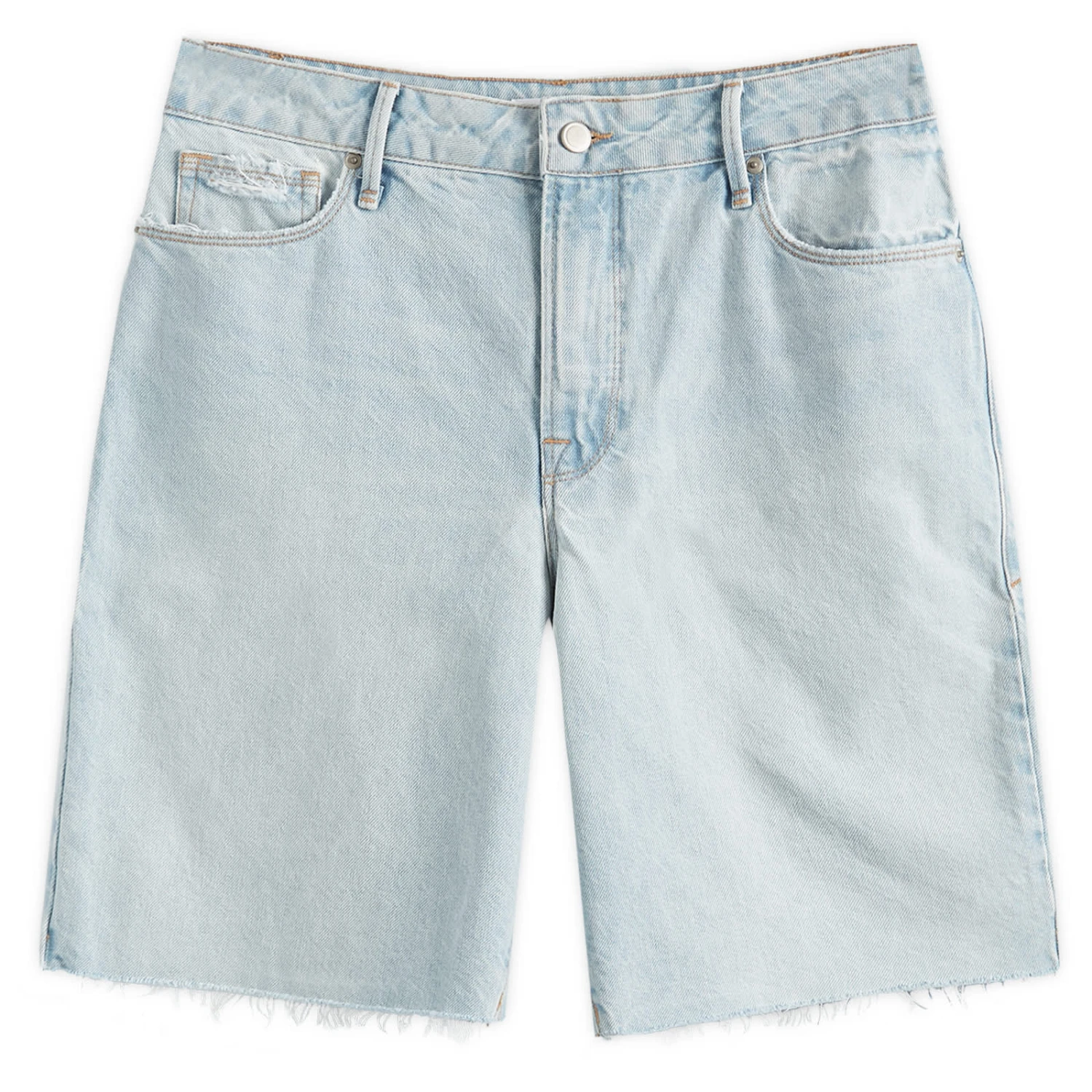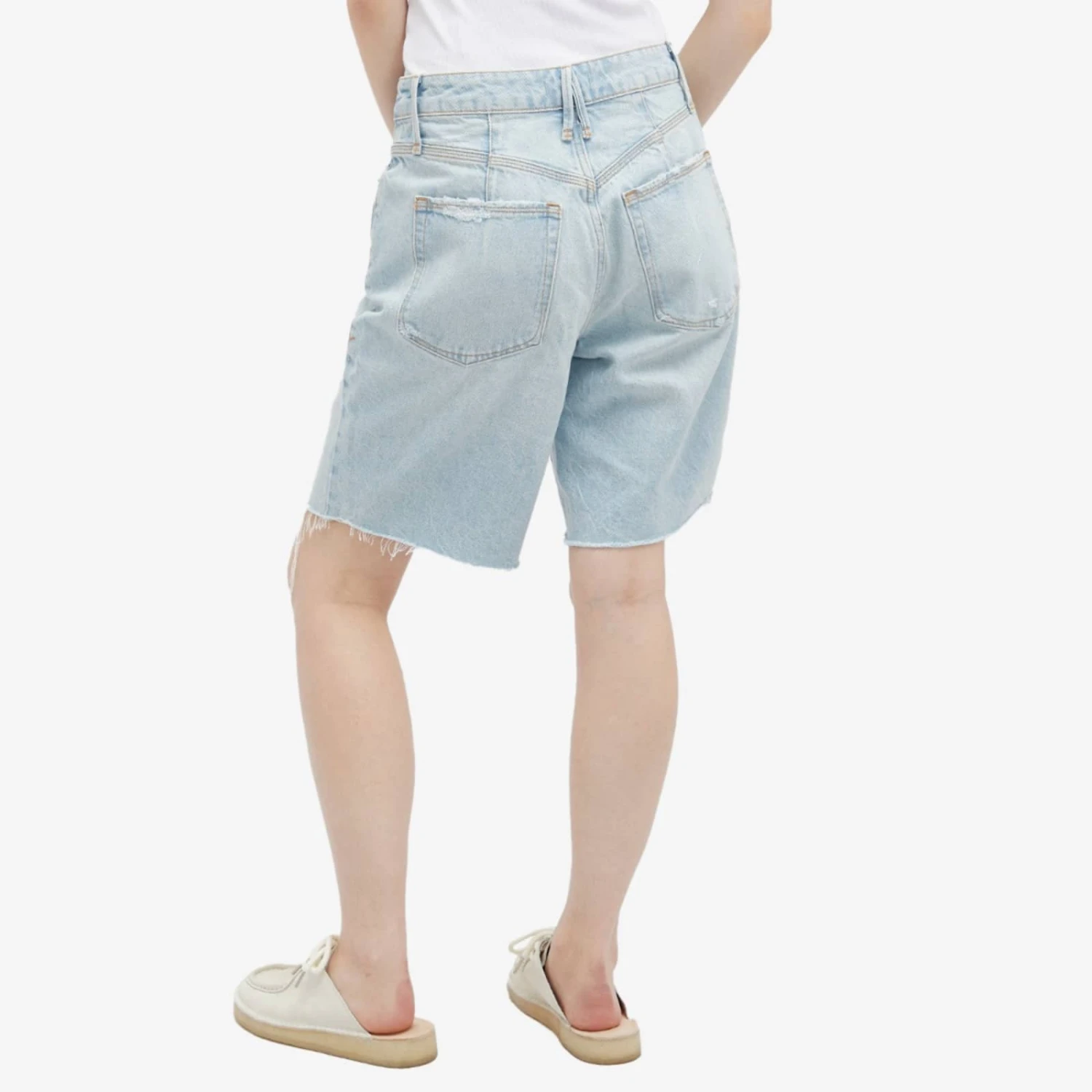 Good American continues to redefine fashion with these Bermuda Shorts. Boasting plenty of pocket space and eye-catching raw hems, itβs the perfect way to add an effortlessly cool vintage feel to your summer style.