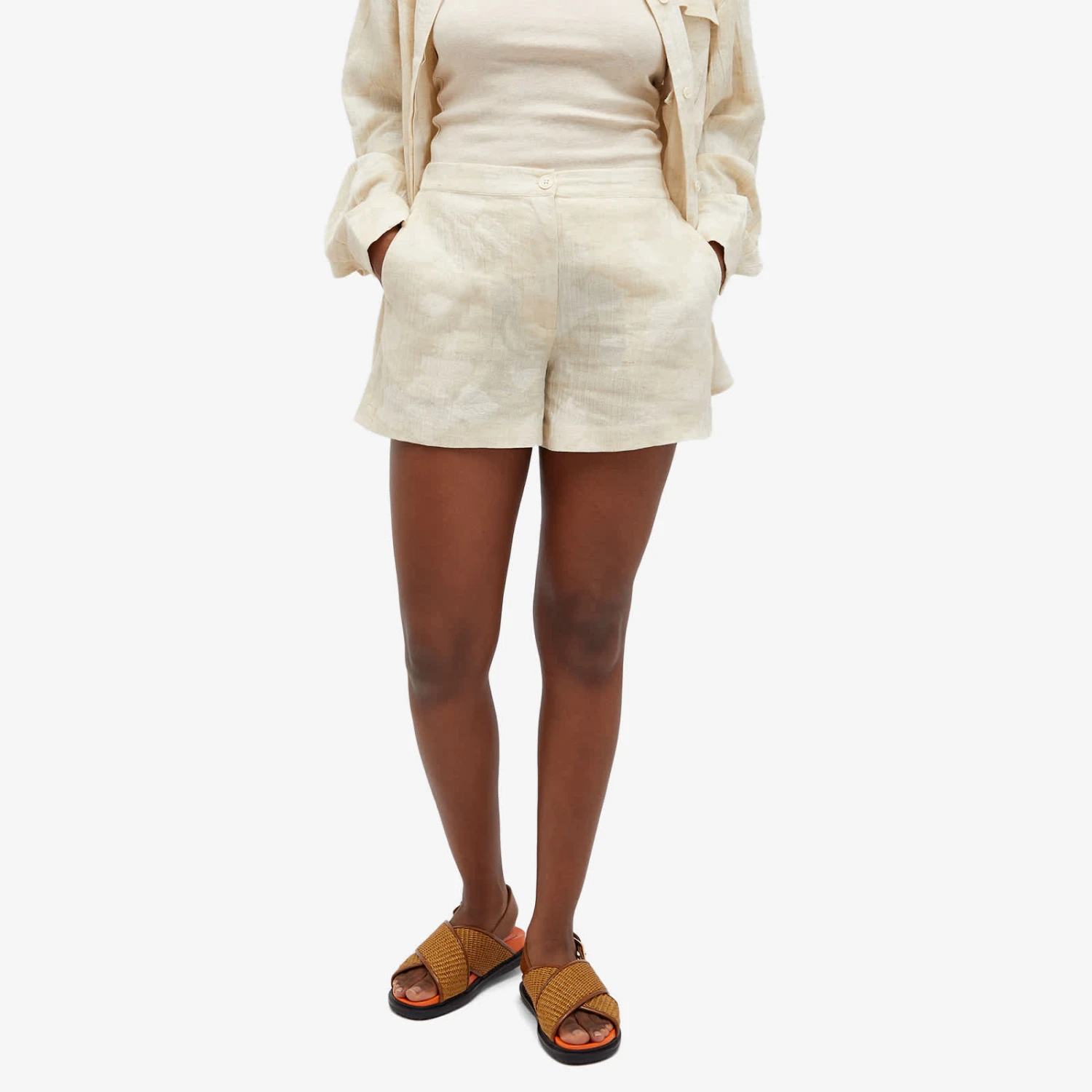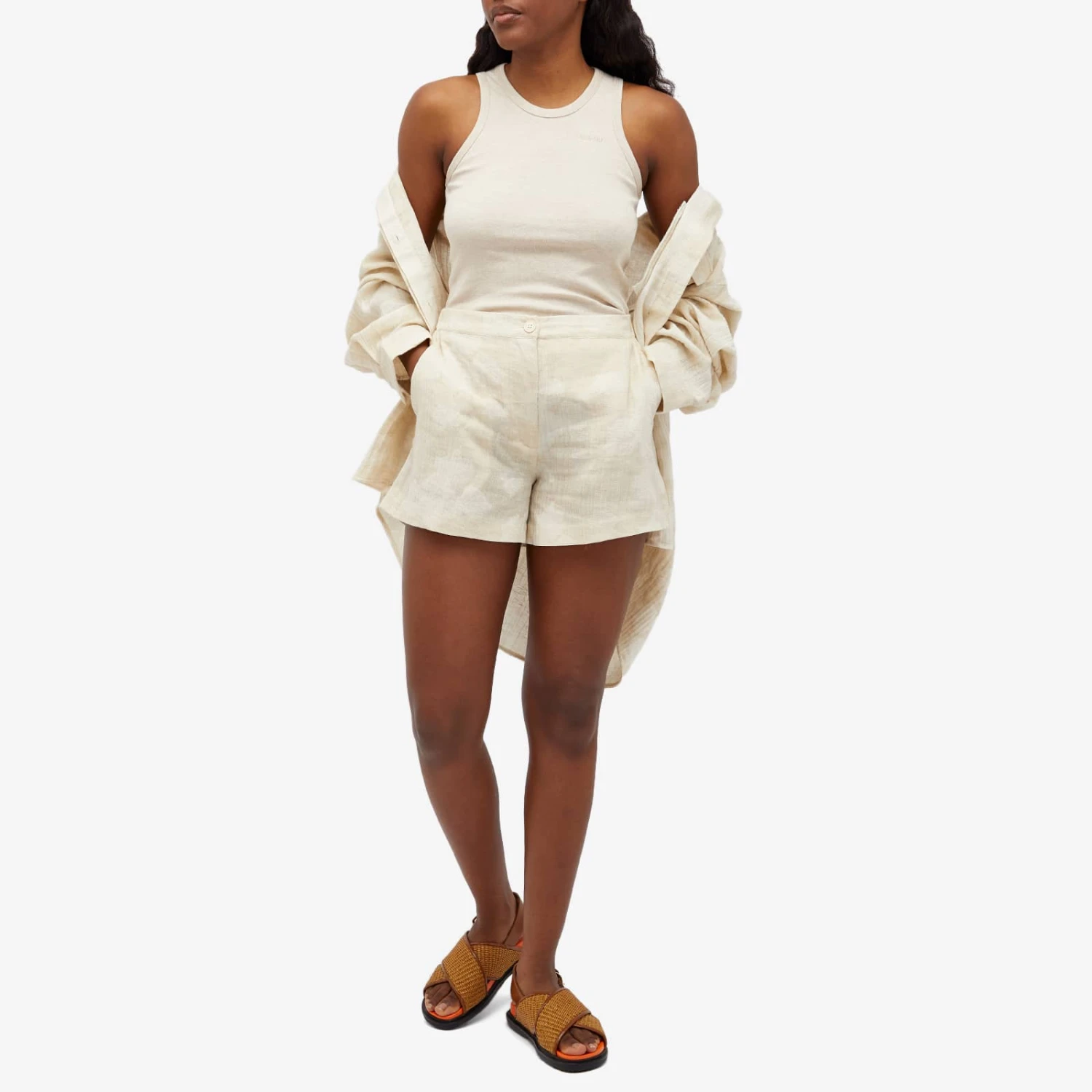 Oslo-based Holzweiler have mastered the art of relaxed elegance, exemplified by these Jacquard Shorts in Ecru Mix. They boast a comfortable high-rise waist, practical side slit pockets, and striking wide legs for an effortlessly laid-back look. Defined by their distinctive abstract jacquard print, they embody Holzweiler’s commitment to blending sophisticated design with everyday functionality.