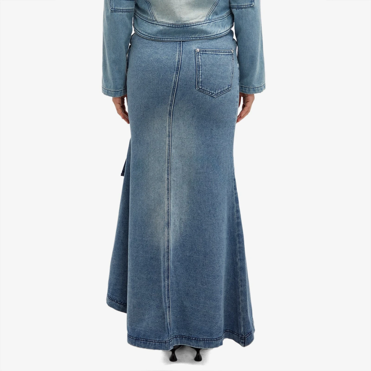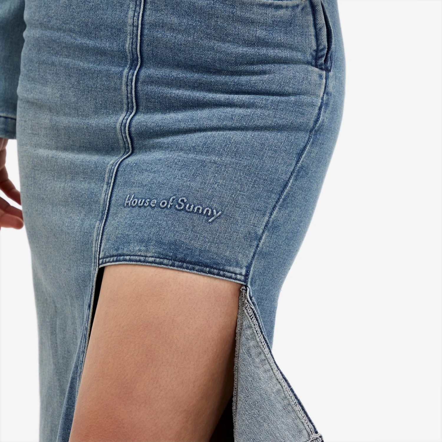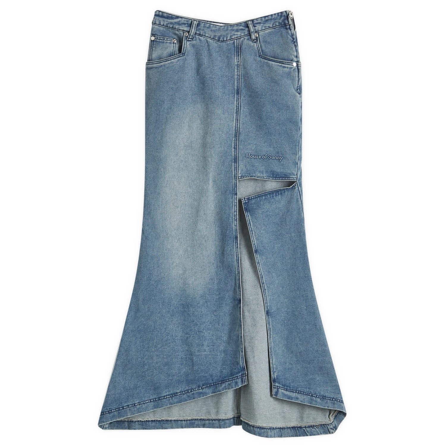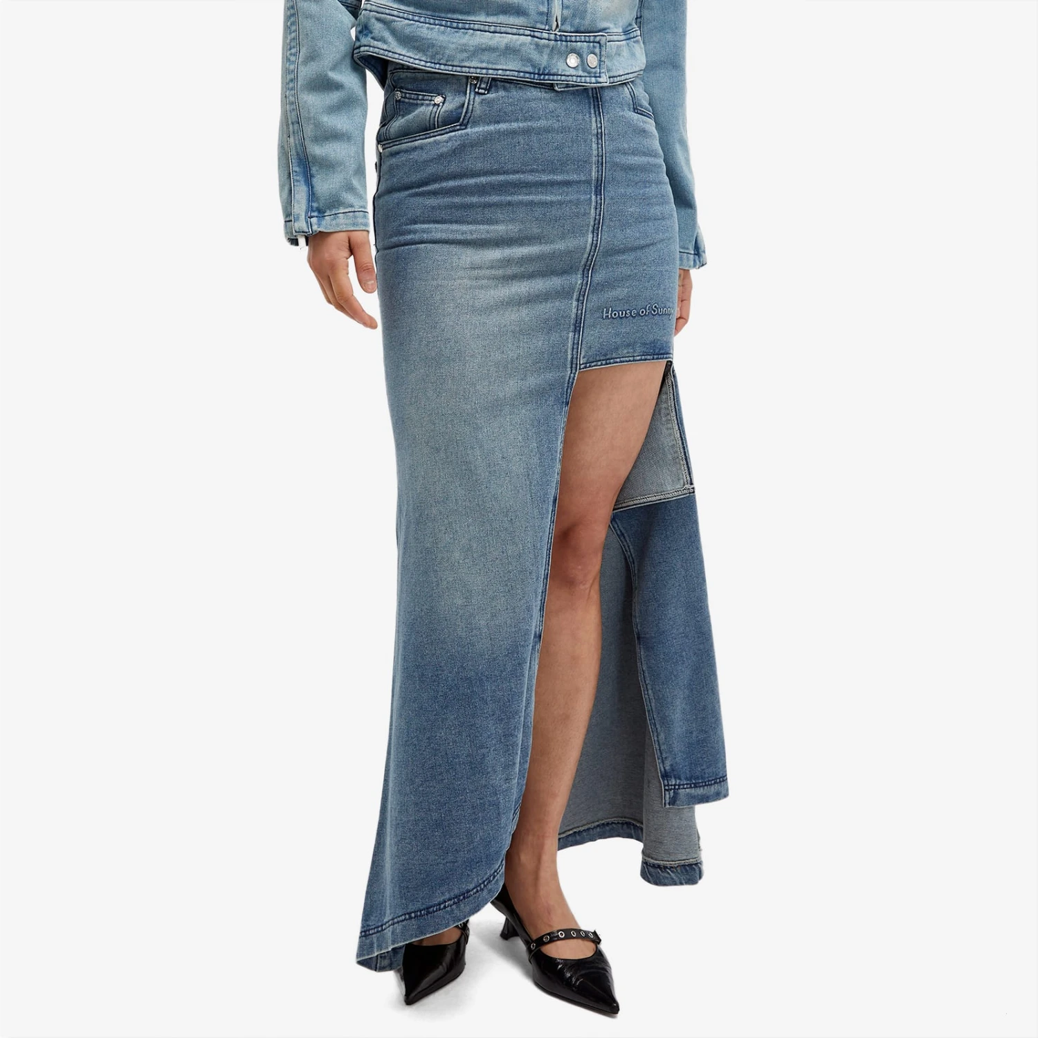 Make a bold fashion statement with The Cascade Denim Skirt from House of Sunny, featuring a dramatic asymmetric length and unique design that turns heads wherever you go. The brand’s logo is embossed to the front, a nod to the contemporary style and vision that’s gained a cult following since HoS began.