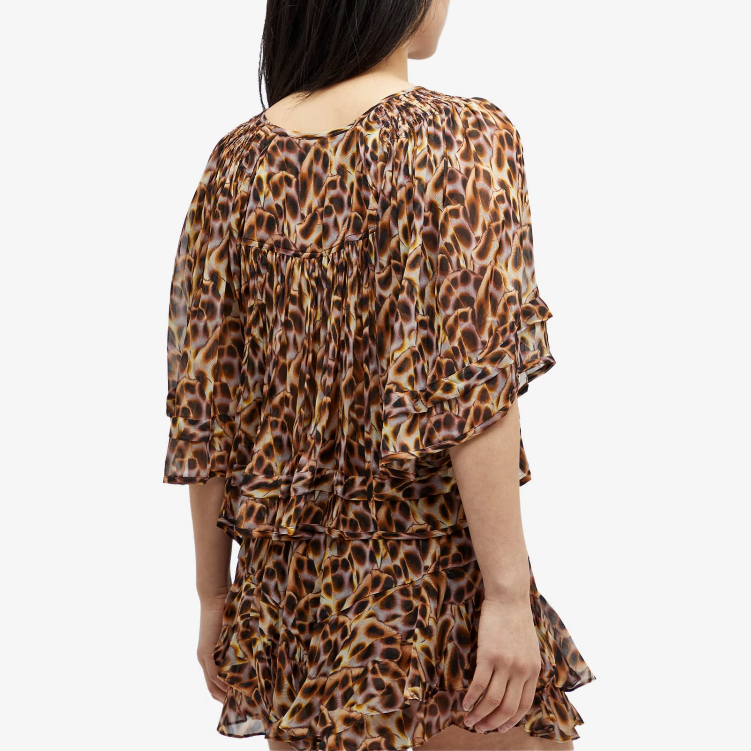 Embrace Isabel Marant Étoile’s effortless elegance with this Roxin Short Sleeved Top. With its vibrant ochre print, spacious sleeve structure and ruffled detailing across the body and hems, this look guarantees eye-catching energy from any angle, we’re sure.