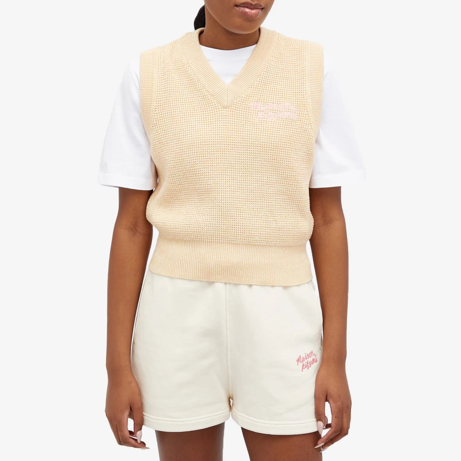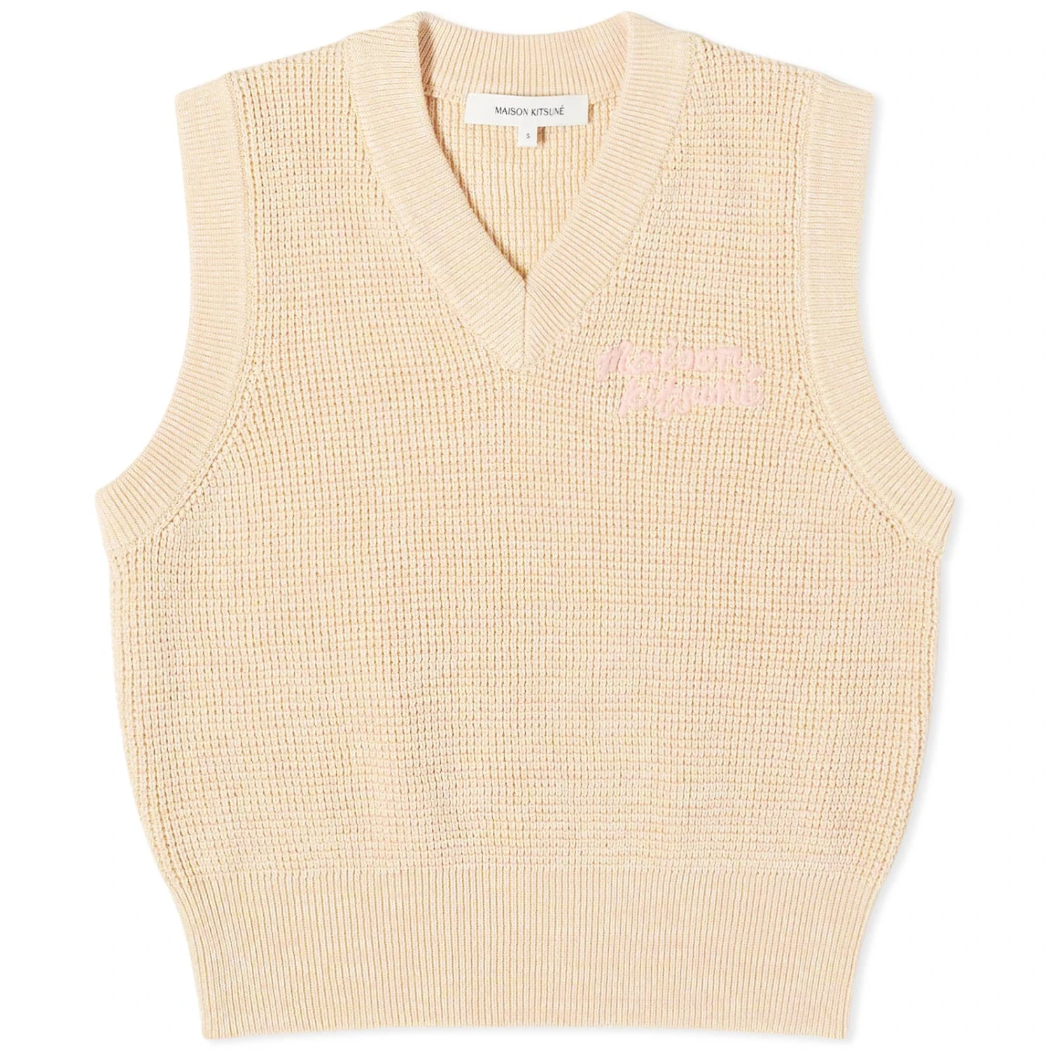 Embrace casual-cool with Maison Kitsuné’s Handwriting Crop Vest. This sleeveless knit features ribbing at the neckline, armholes, and waist. The standout detail? An embroidered Maison Kitsune handwriting patch at the chest. Wear solo or layer over a shirt. Effortless.