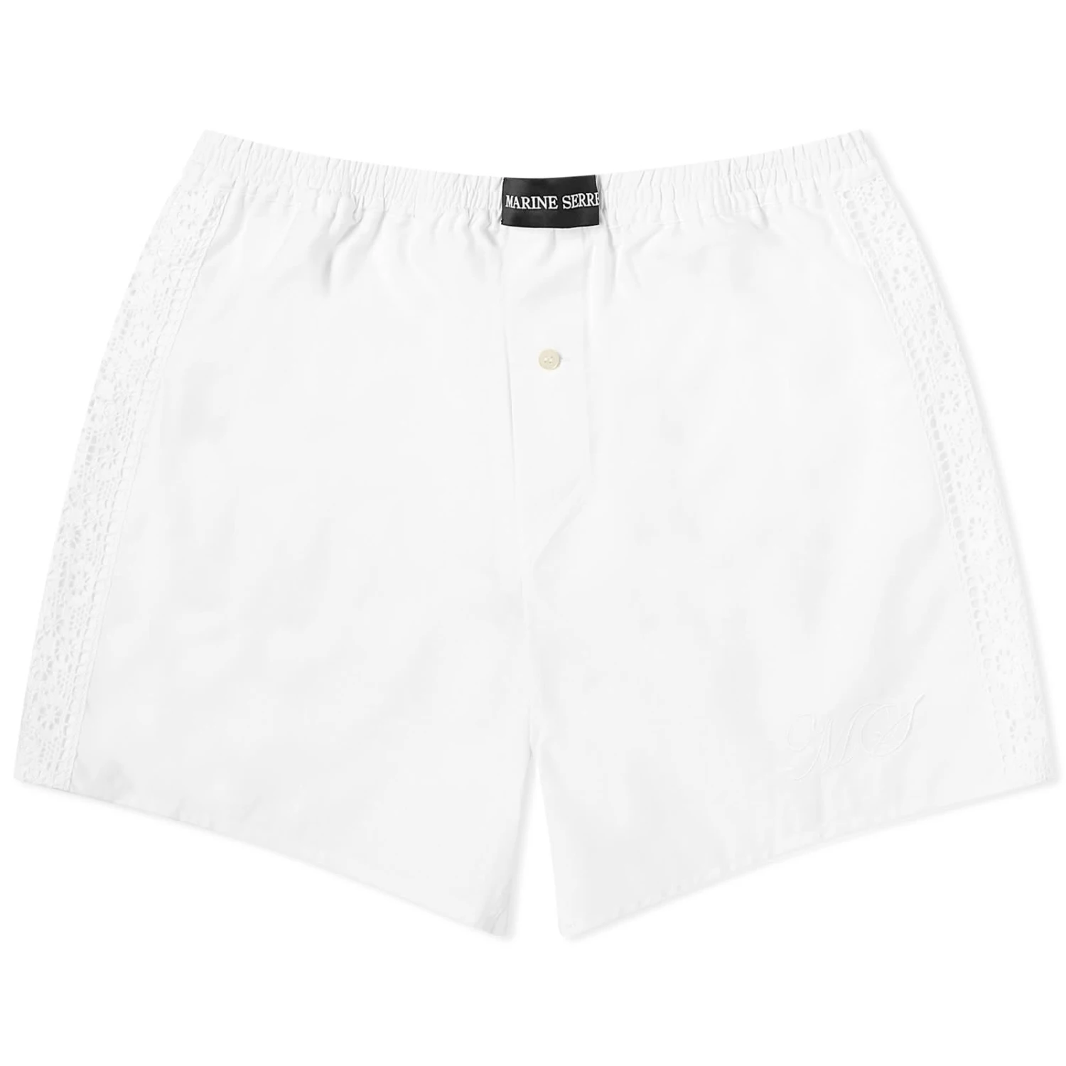 Upcycling isn’t just a passing fad for Marine Serre – it’s a fundamental aspect of her design ethos. The French designer puts upcycled materials front and centre in her creative process. Case in point: these boxer-style shorts. Made from upcycled cotton and hemp and featuring lace topstitched panels at the sides, they’re finished with initials at the leg, inspired by the charm of embroidered pillowcases.