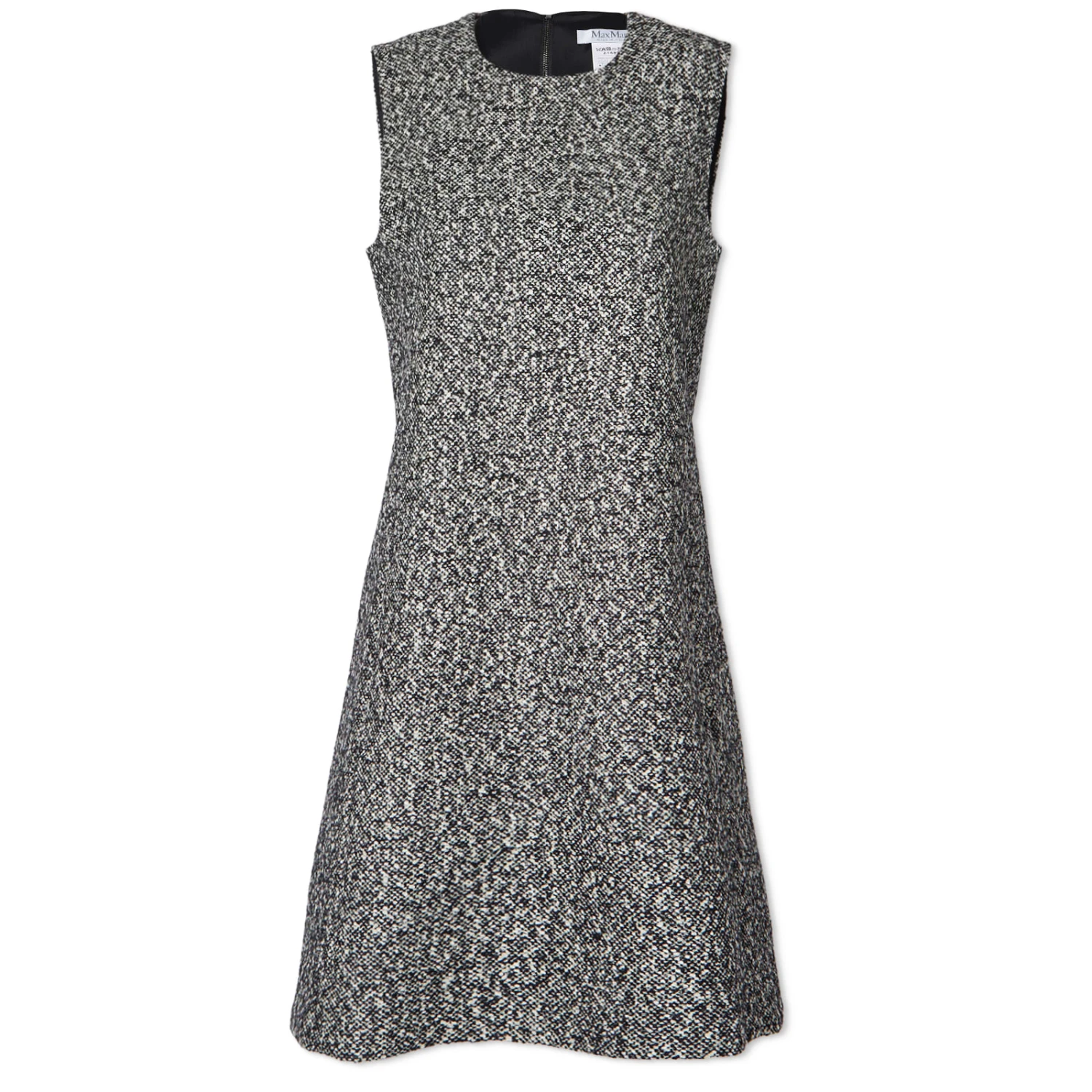 Max Mara gets nostalgic this season and the Moscova mini dress looks like it’s stepped right out of the ‘70s. This retro inspired shift style is tailored from a wool-blend boucle tweed to create its tactile monochrome mélange while inside is lined with a satin fabric for a silky smooth finish.