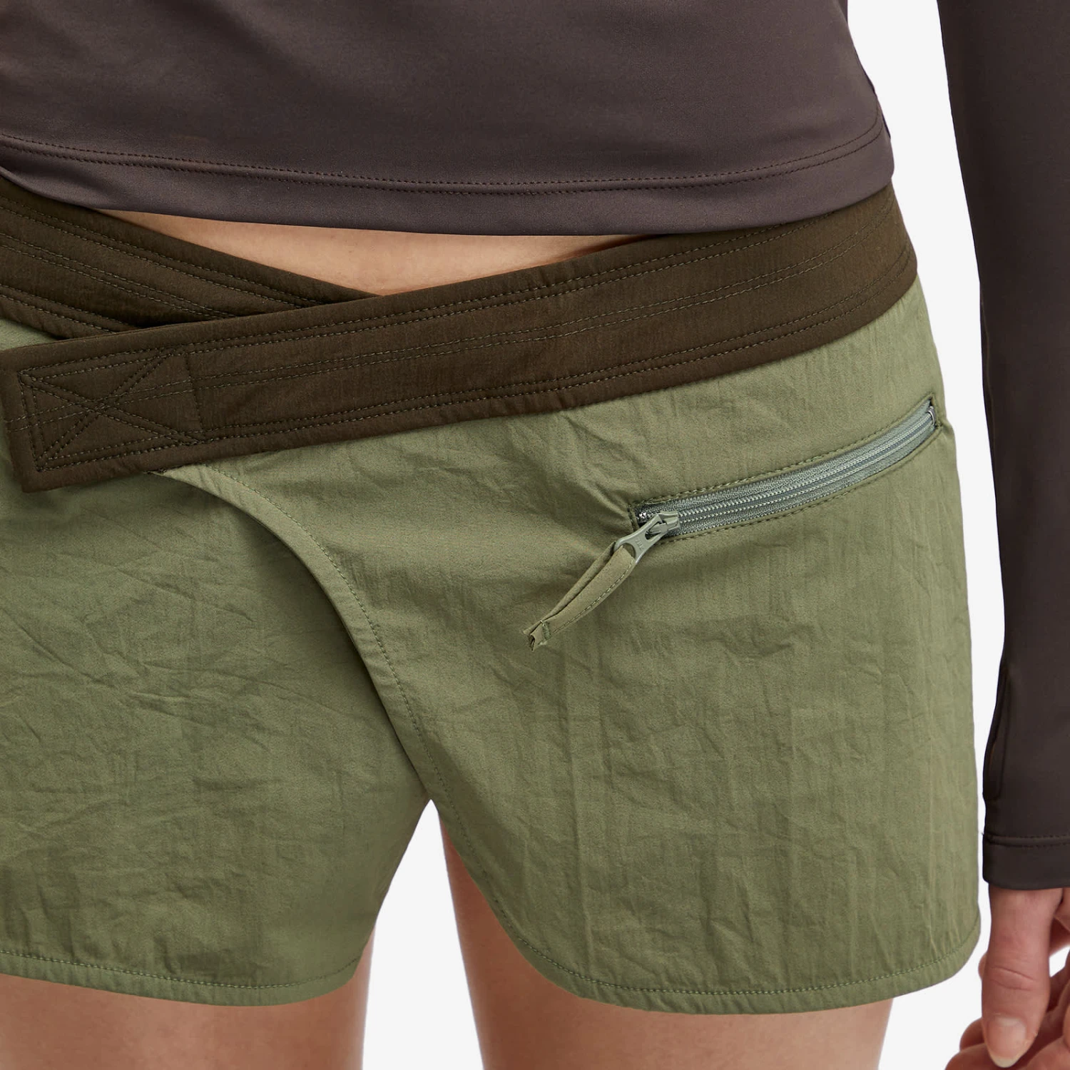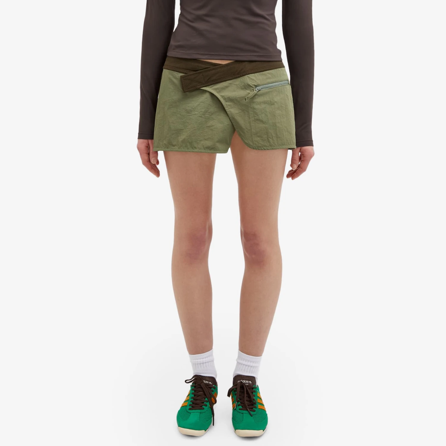 We’ve seen mini skirts, but this one takes ‘itty bitty’ to a whole new level. LA-based brand Miaou brings its Y2K energy into the new season. Infused with utilitarian influences, this mini skirt showcases a techno nylon fabric and a wrap-over front. It’s all about minimalist coverage, designed to cover only the essentials.