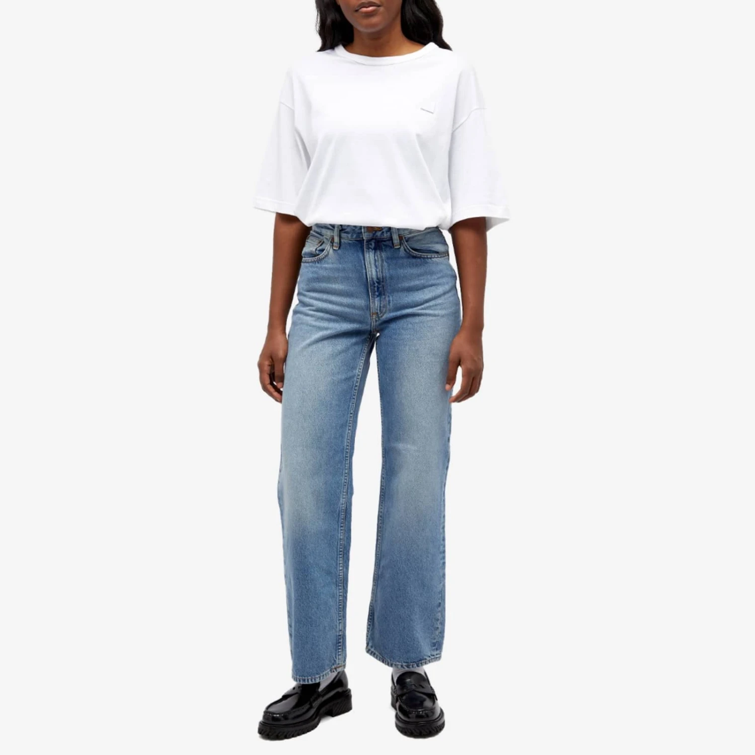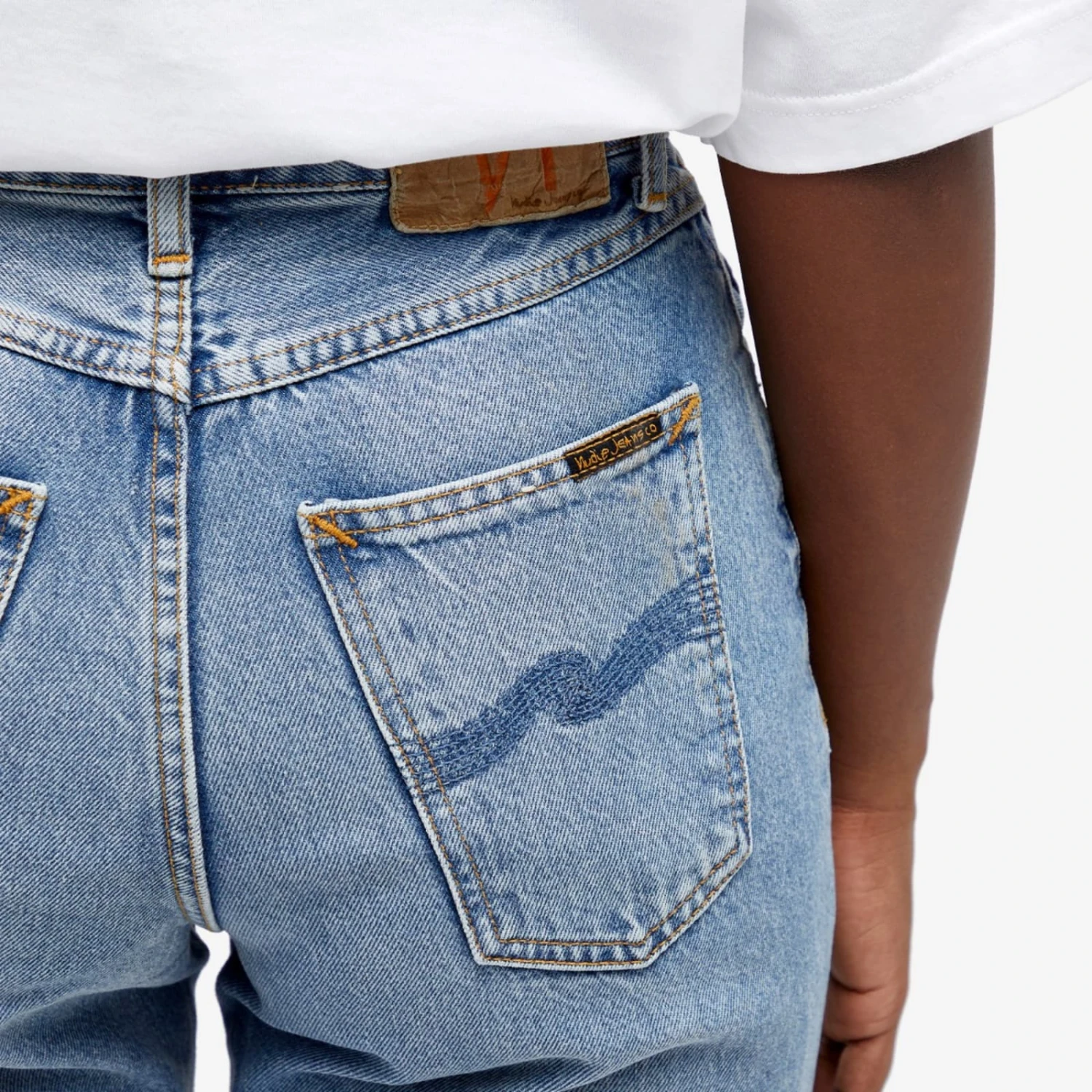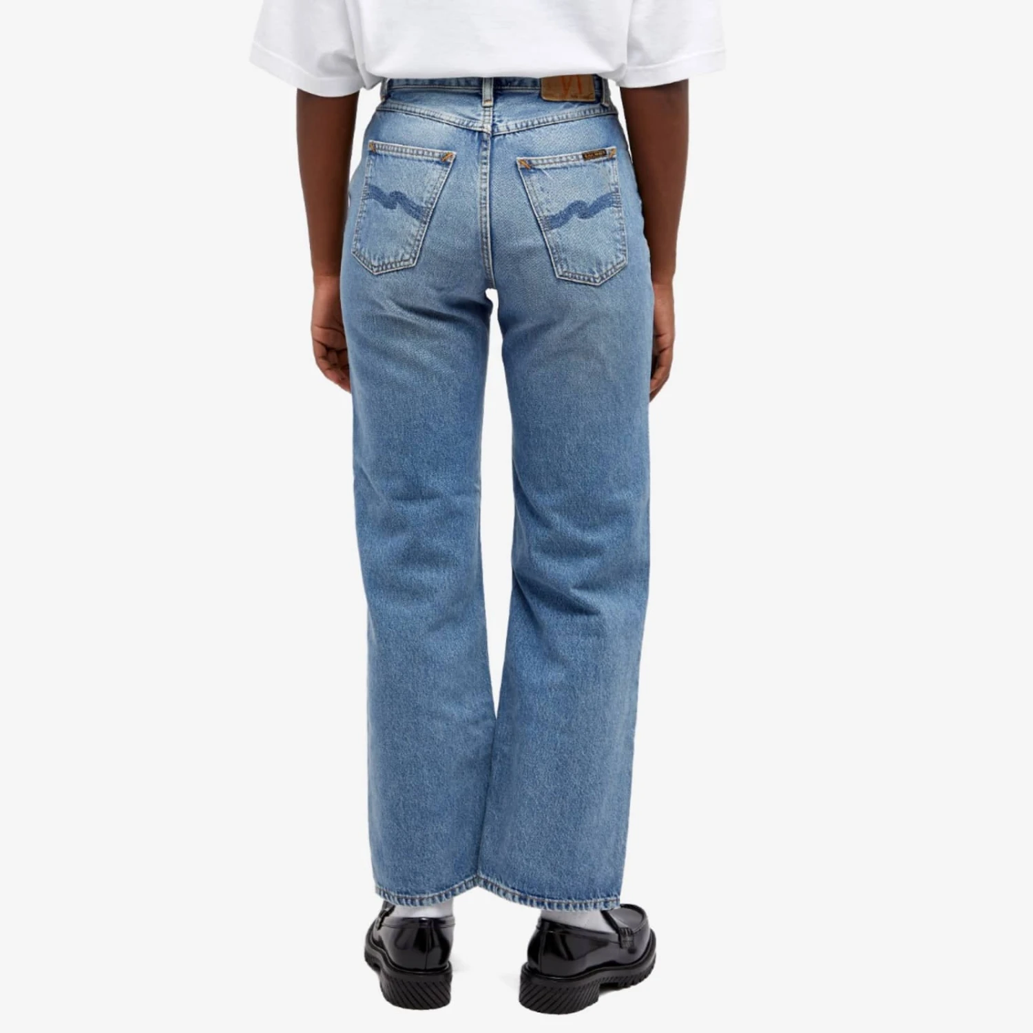 Reminiscent of true 90s fashion, Nudie welcomes these clean Eileen vintage dreams into its latest collection. They’re a staple design that offers a loose, high-waisted fit that’s cut from authentic blue-wash denim. A marbled stonewash effect gives them a vintage, worn-in feel, synonymous with old favourites. Copper trims and orange thread detail sign them off for enhanced brand appeal, along with the coveted jacron patch at the back.
