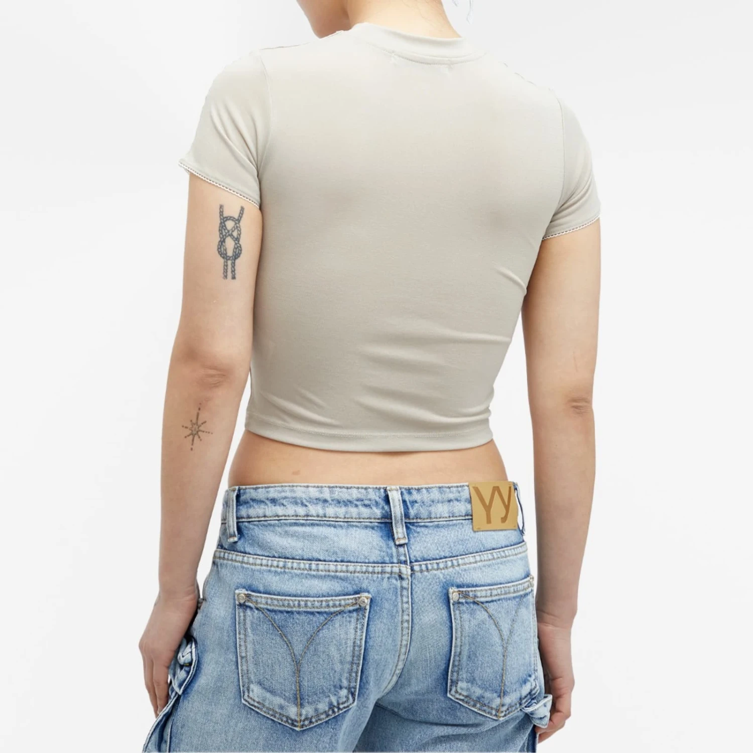 If you’re into modern, relaxed shapes with a touch of fun, OPEN YY, the Korean brand run by sisters, should be on your watchlist. Itβs bringing back the ’90s with this baby t-shirt that features charming scalloped cuffs and sweet lace trims on the sleeves. Team it with low-rise jeans to channel that Y2K vibe.