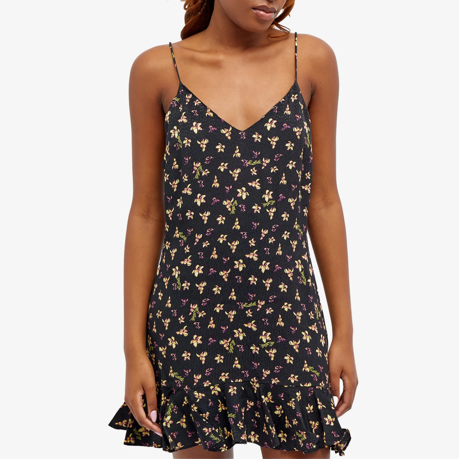 Everyday is a glam day with ROTATE Birger Christensen. Headed by besties and Scandi influencers Jeanette Madsen and Thora Valdimars, it’s the destination for sweetheart necklines, romantic ruffles and cult-worthy dresses. This slip dress is crafted from a textural jacquard fabric and features spaghetti straps and a frilly hem. Throw this on for picnics in the park to garden parties.