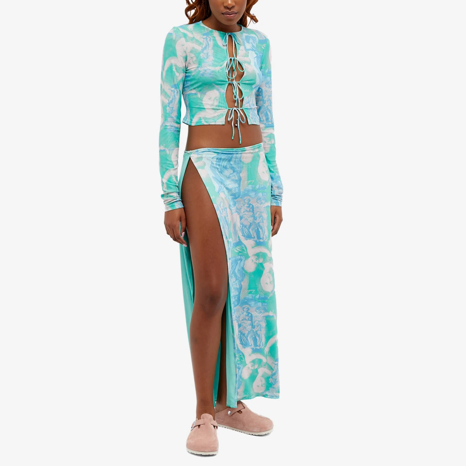 ROTATE girls like to stand out at the party. This wrap skirt from the Scandinavian label is heavenly, with vintage inspired mesh that wraps around the body with a close fit and a sweet tie side fastening. Pair with the matching mesh top. Perfect.