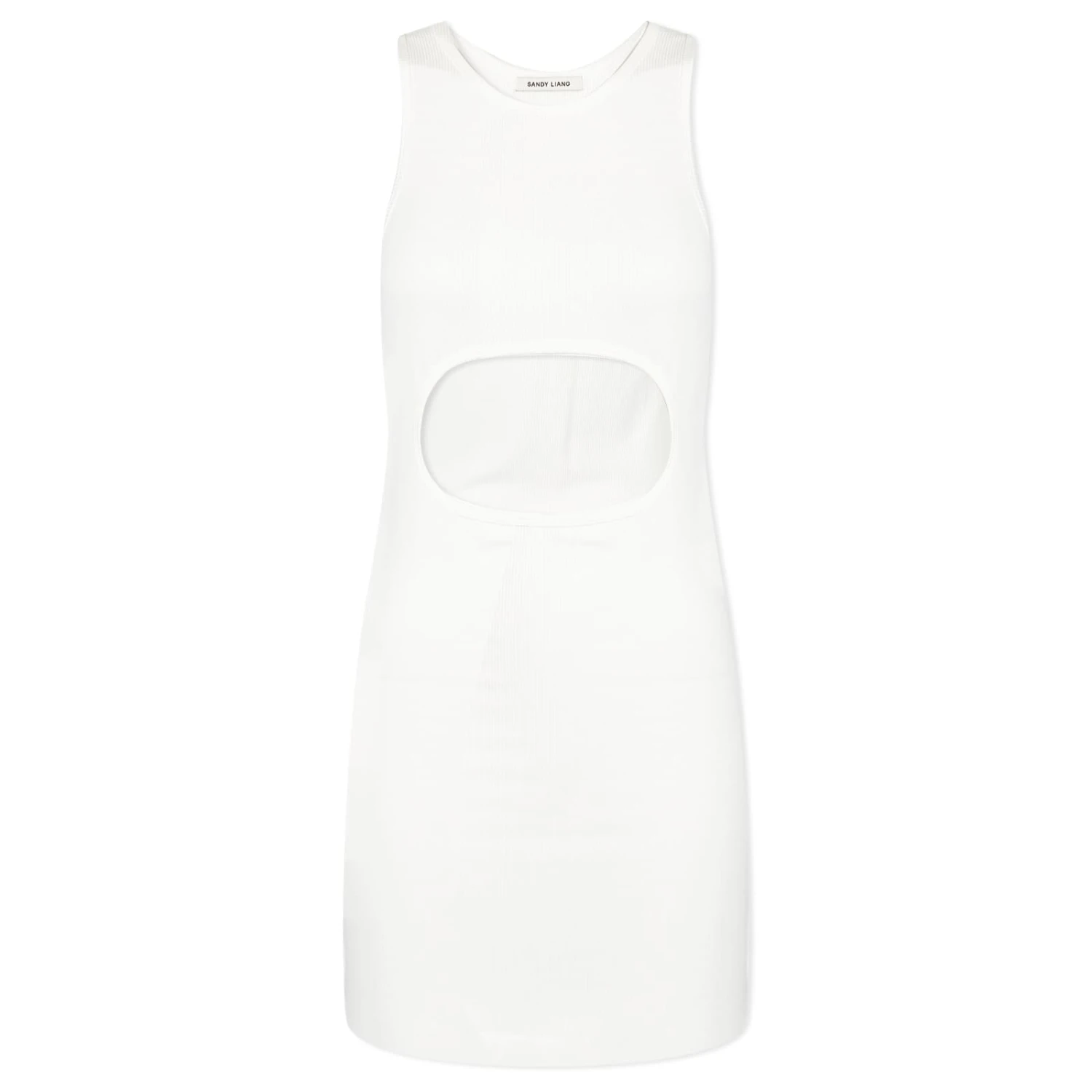 Designer Sandy Liang takes inspiration from Lower East Side cool kids to the eccentric style of Chinatown grandmas. The Riblet tank dress is a little more daring than your usual. Figure hugging, its silky rayon fabric is strategically cut, leaving a skin bearing circle at the waist.