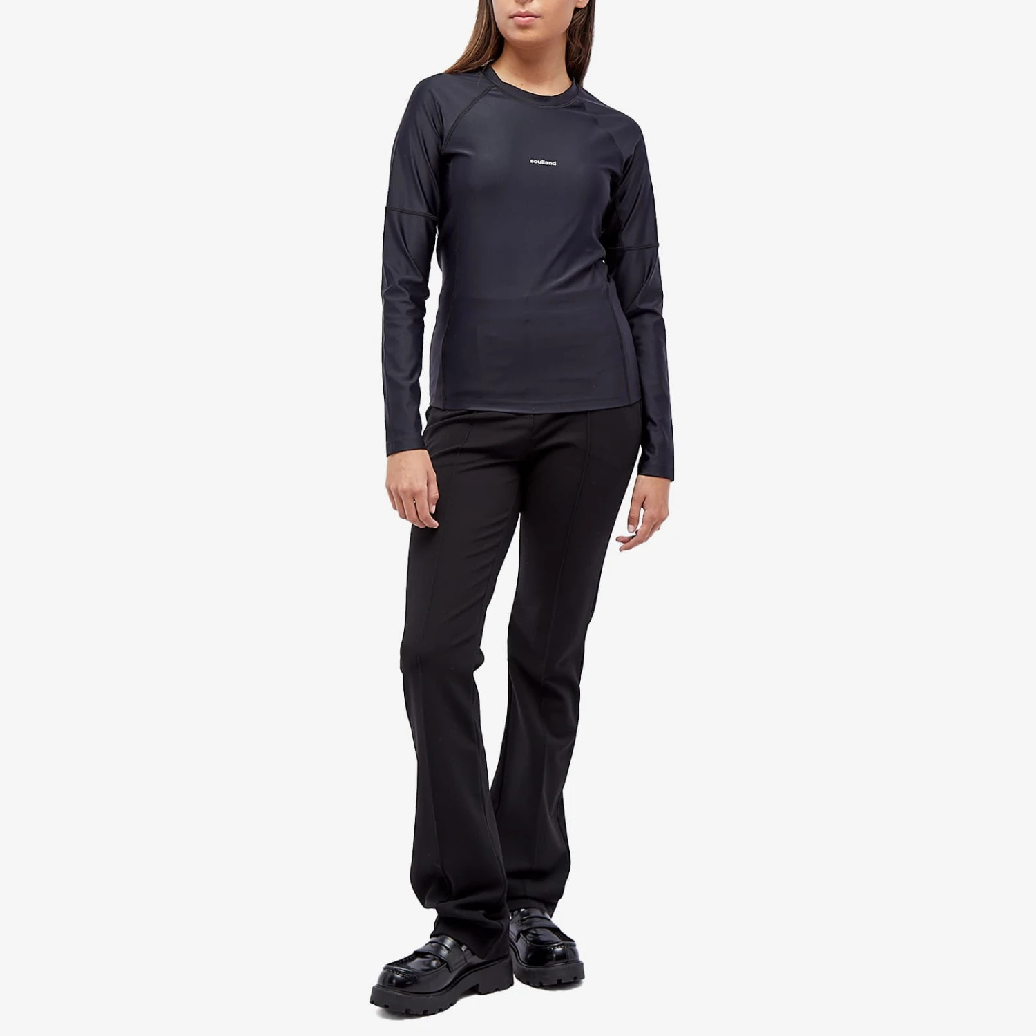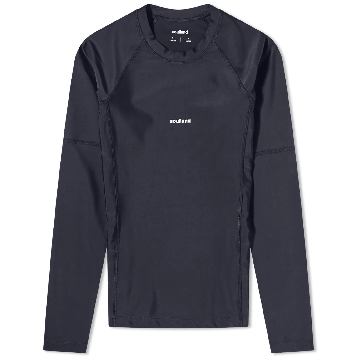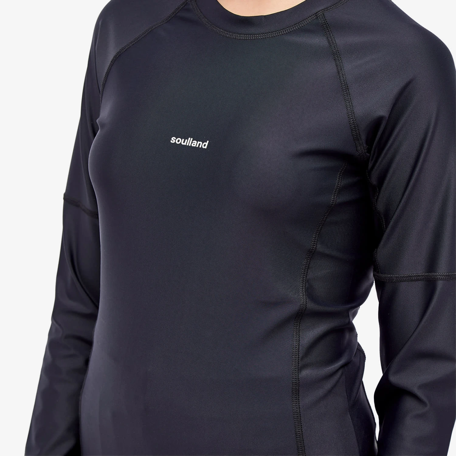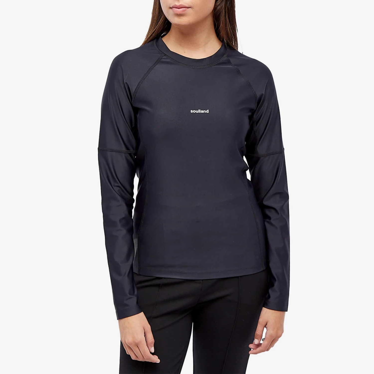 Dive into the world of Soulland in the Anna Swim Top, where fabric and function work in harmony. This tight fit swim top from the Danish label is cut from a partly recycled quick drying material which keeps you comfortable and ready for action. Elsewhere raglan sleeves and reflective printed branding offer a sporty element to an otherwise stripped back design.