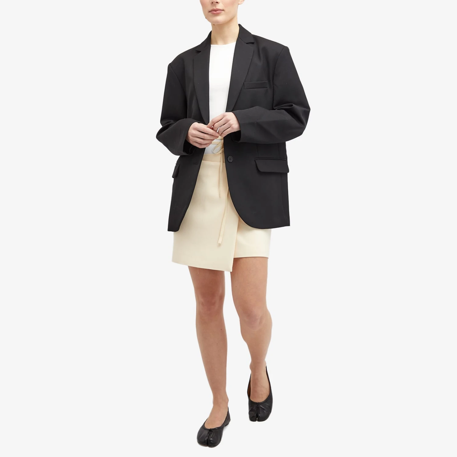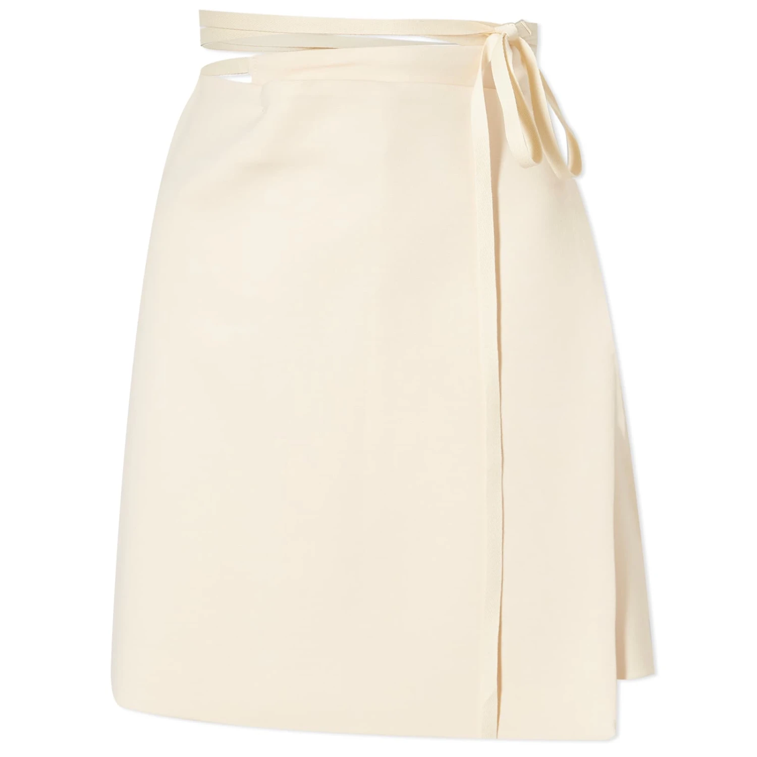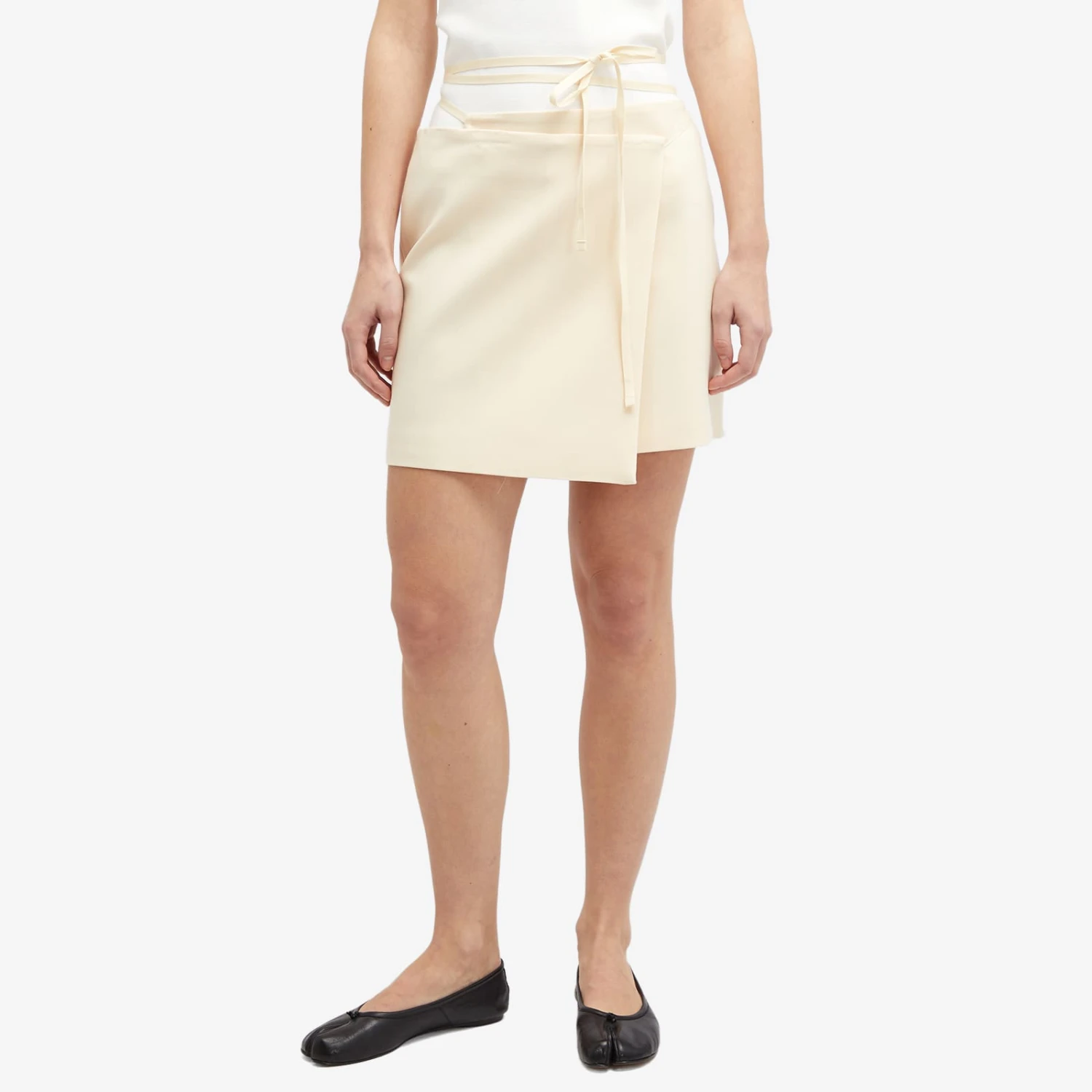 Sportmax creates maximum impact through minimalistic design. Think sharply tailored cuts with unexpected, playful twists. This wrap-style mini skirt, made from double-faced wool with a hint of stretch for comfort, features a tie waist detail. It’s the perfect match for an oversized blazer.