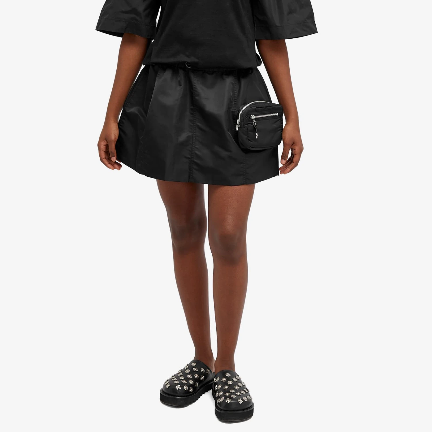 TOGA’s Nylon Twill Mini Skirt fuses Japanese style with Western elements, choosing to straddle the line between utilitarian and Gyaru culture. Crafted from durable twill fabric, this mini skirt features a zip pouch pocket and drawstring waist adding a functional twist to a classic concept.