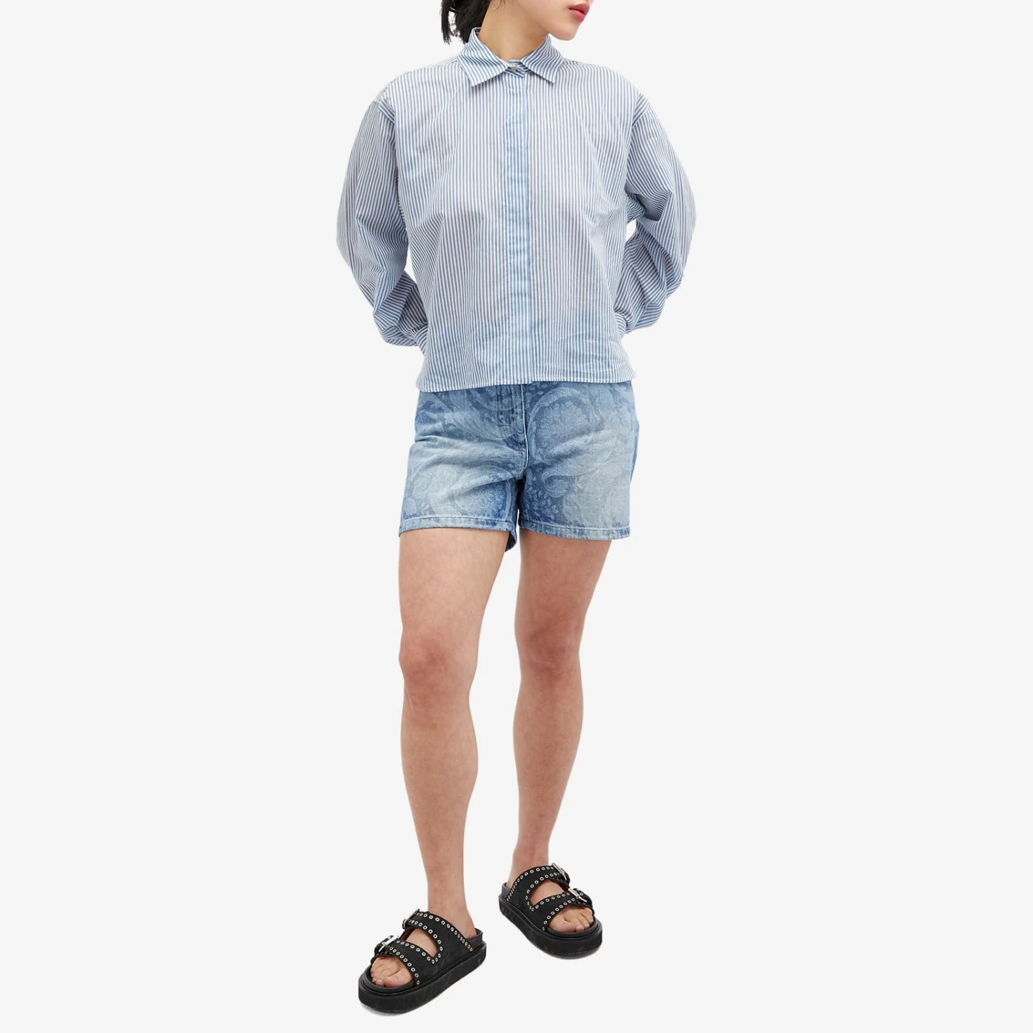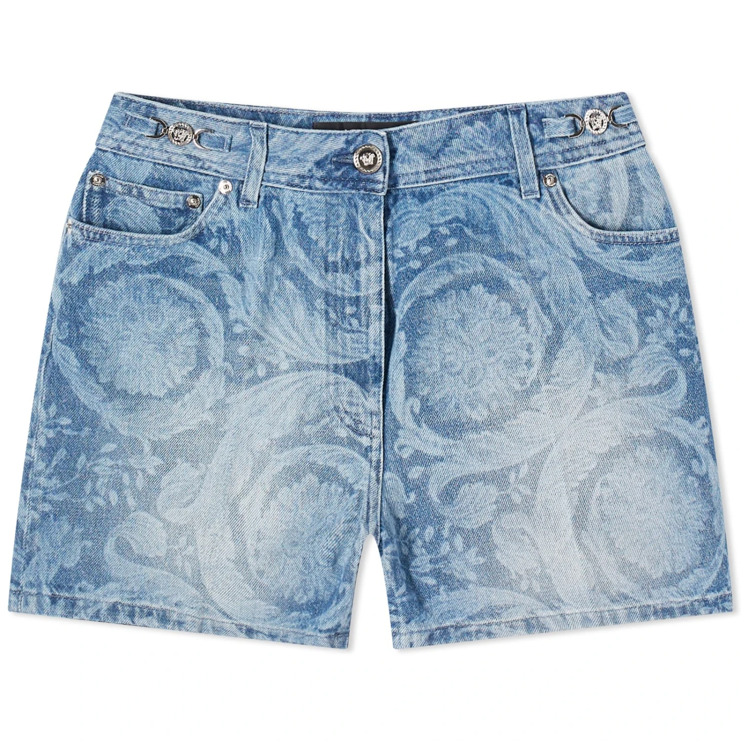 Beginning as a namesake boutique in 1978 by Gianni Versace, his signature bold aesthetic led to him being the mentor of a ‘more is more’ way of thinking. Perfect for the warmer weather, these shorts are cut from a sturdy cotton denim. With tailoring pleats, an all over Baroque print adds a premium finishing touch.