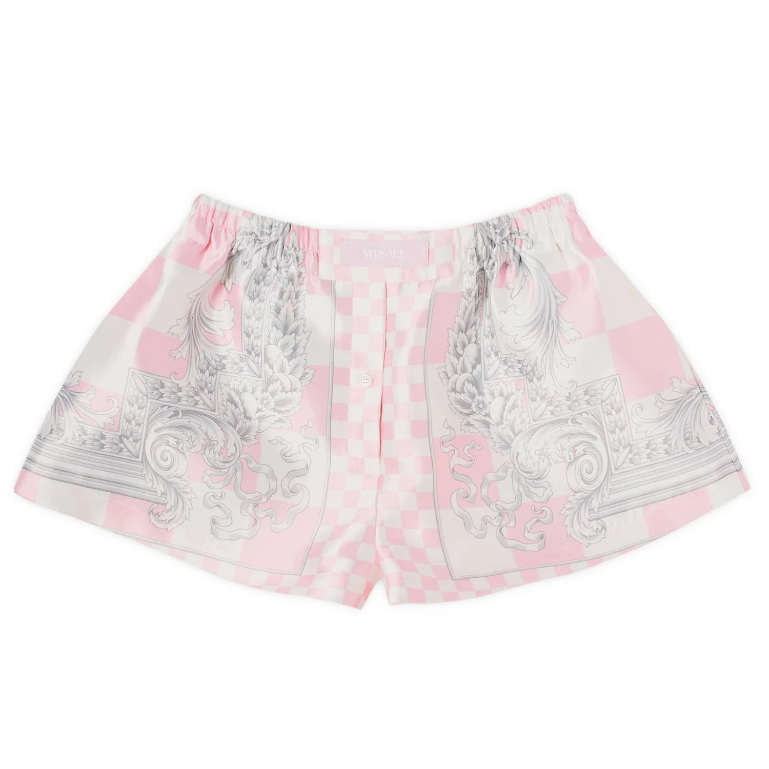 Versace’s signature Medusa and Barocco motifs remain iconic mainstays for the luxury house – as these Baroque Printed High Waisted Shorts prove. Cut from a premium silk blend, this structured style is also decorated using a checkerboard print and traditional logo label, making them an unmistakable addition to any line-up.