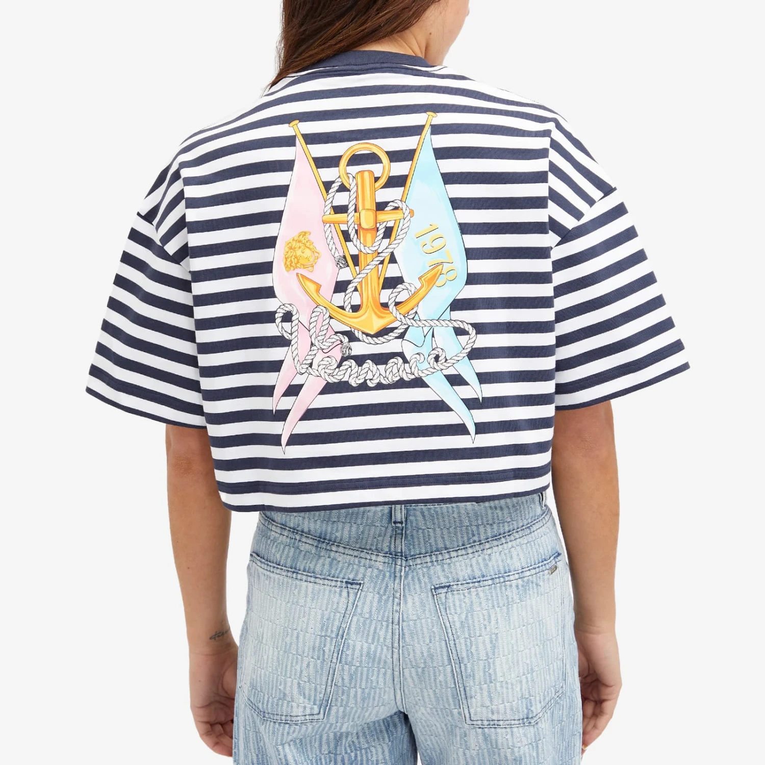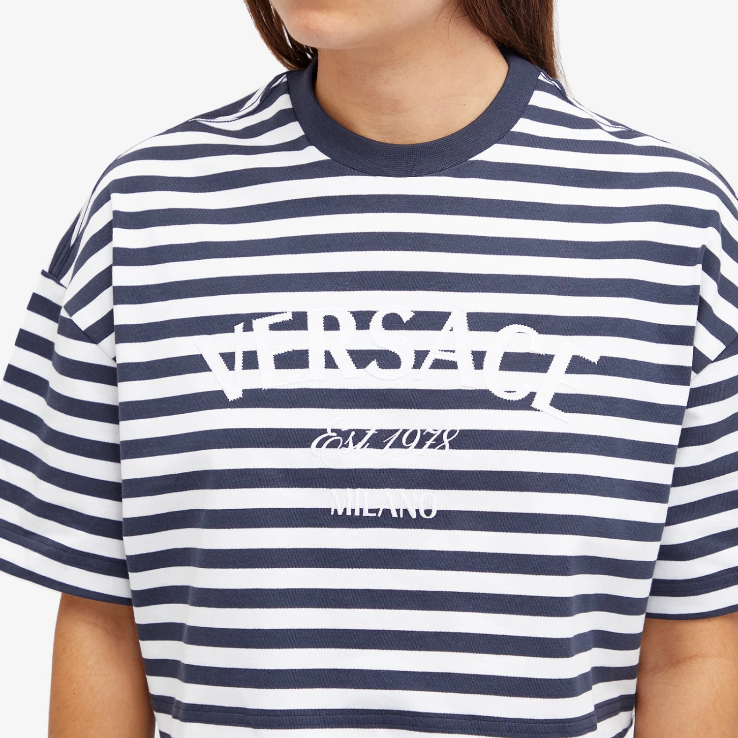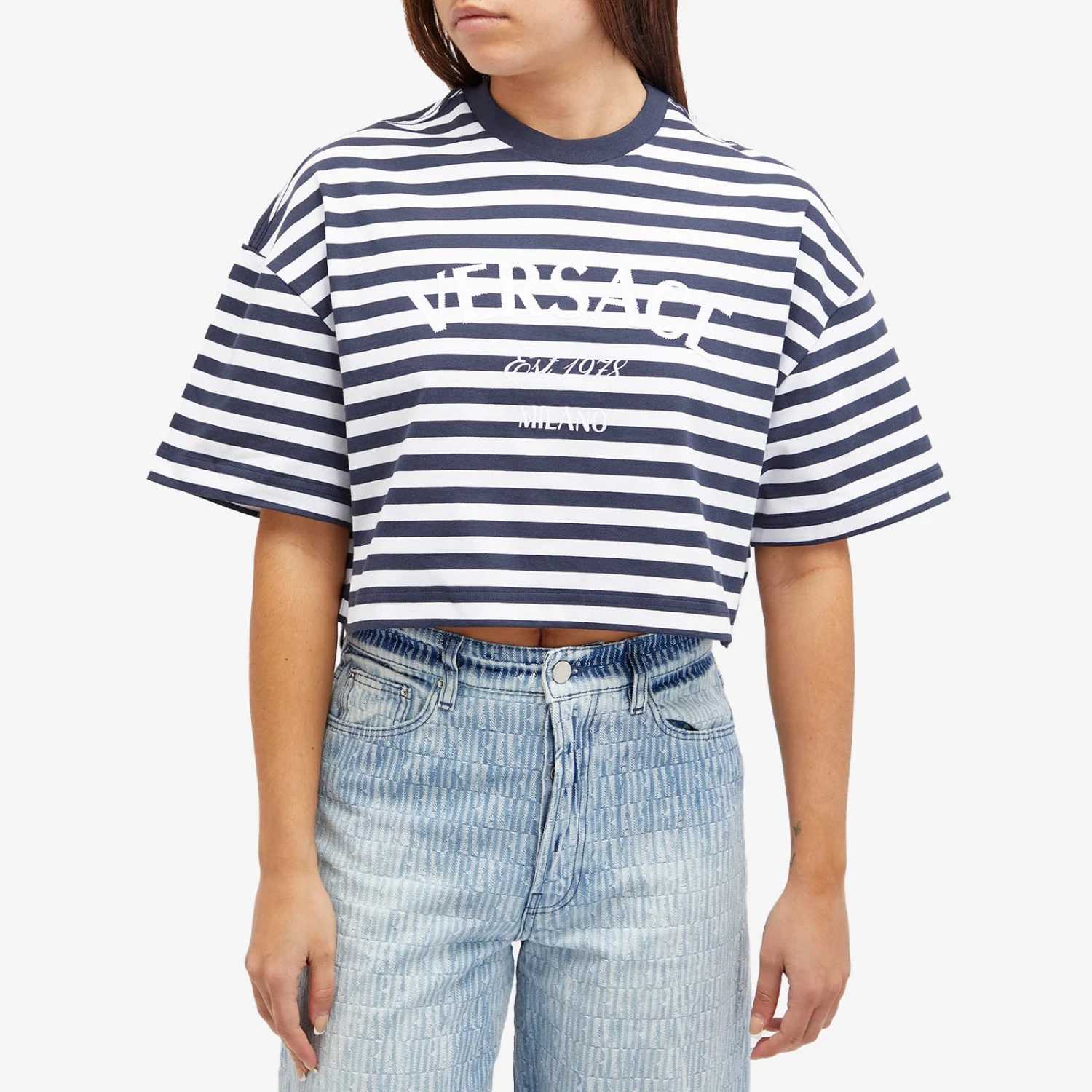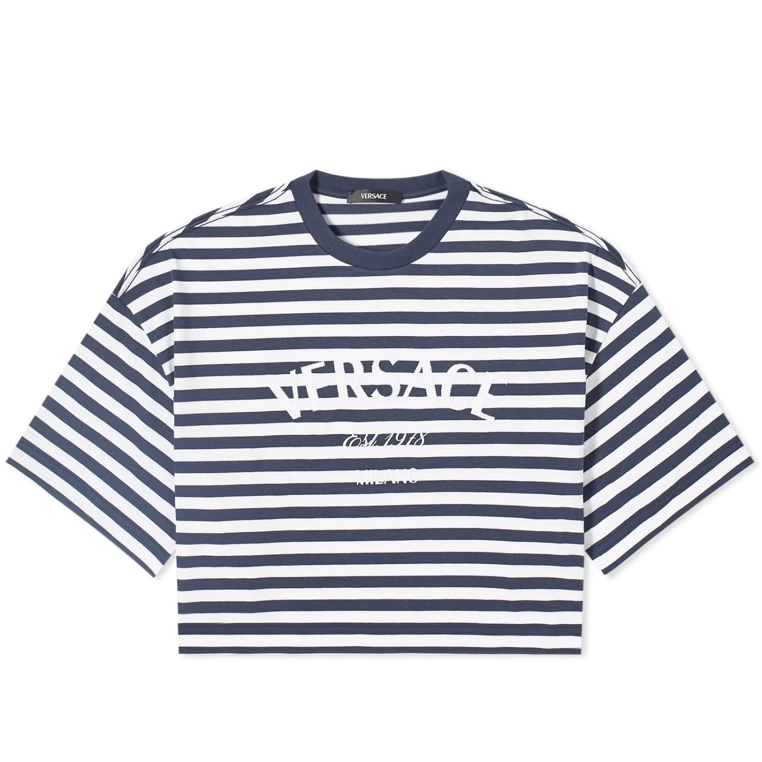 Celebrate the Versace legacy – which dates back to 1978 – with this Crop Stripe Logo T-Shirt. The clue’s in the name here, as the luxury House opts for a short contemporary cut, and decorates the design using its heritage branding and L’Ancora Versace artwork to create an instantly iconic feel. Consider us obsessed.