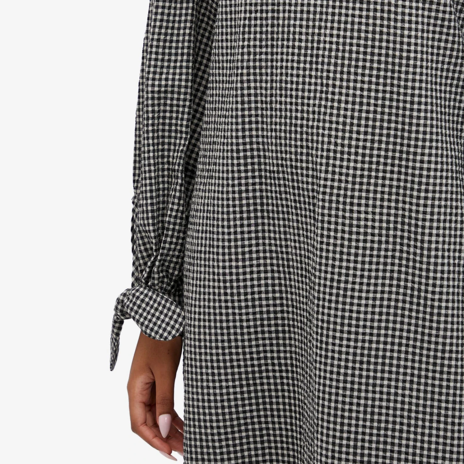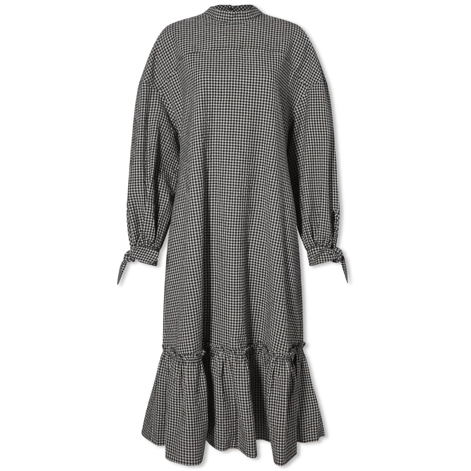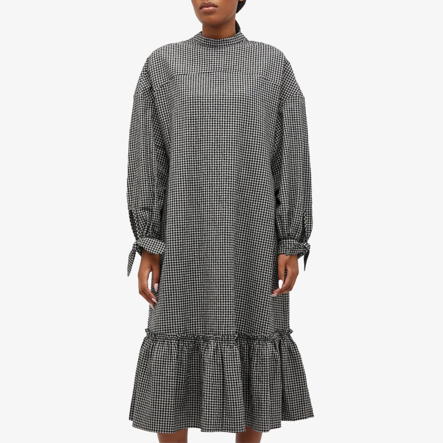 Taking inspiration from military and workwear garments YMC references the monumental shirting of Robert Mitchum. Perfect for those casual looks, the Rushmore Midi Dress is cut from a gingham check cotton. With long sleeves, dropped shoulders and pleats at the centre, gathered ribbon cuffs complete the design.